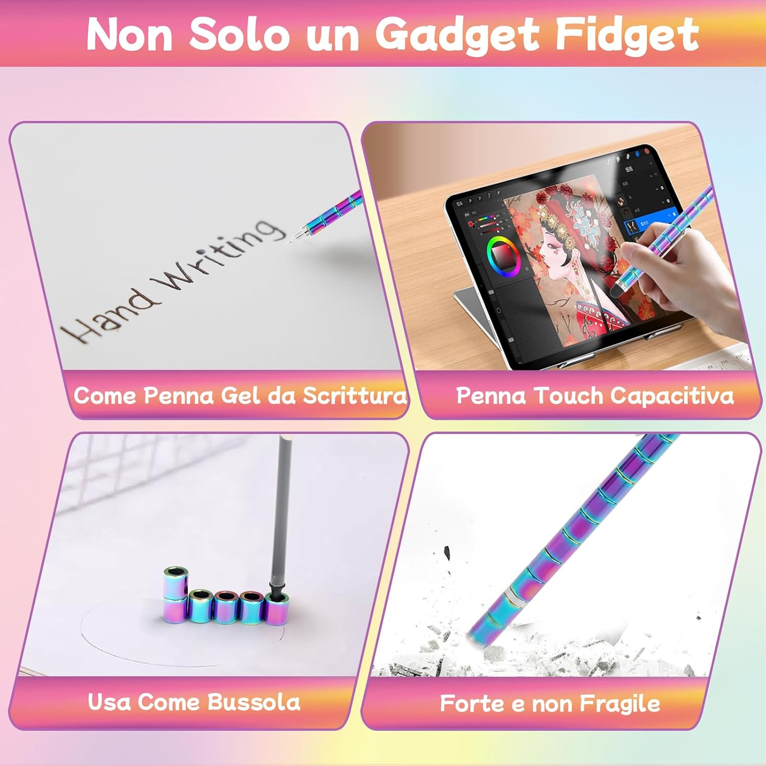 Nuovo Concetto di Design Innovativo: la penna fidget CDDFUNGO combina le funzioni di una penna convenzionale e di un gadget fidget in modo innovativo. La penna fidget può essere utilizzata non solo come penna da scrittura, ma anche come gadget felice per te dopo il lavoro e lo studio. La penna a punta di dito è composta da diversi segmenti di tubo metallico staccabili. Usa la tua immaginazione, possono essere riorganizzati per creare forme più interessanti Artigianato e Materiali Galvanici Superiori: la penna fidget CDDFUNGO è realizzata con materiali metallici di alta qualità con elevata durezza. L'inchiostro delle penne Fidget scorre senza intoppi e offre un'esperienza di scrittura confortevole. Il colore del corpo della penna ha subito tre processi di galvanica ad alta resistenza e il corpo della penna è stato testato da 500 persone e non è facile sbiadire dopo un uso a lungo termine Un buon Compagno di Gioco Dopo il Lavoro e Durante lo Studio: la penna fidget CDDFUNGO è un dispositivo versatile che può essere utilizzato per vari scopi. Sia che tu stia prendendo appunti o semplicemente hai bisogno di tenere le mani occupate durante una riunione o una lezione, il design unico della penna fidget offre un'esperienza touchscreen soddisfacente che ti aiuta a concentrarti e ti porta più gioia dopo il lavoro e gli studi intensi Idea Regalo Divertente per Ragazze e Ragazzi Adolescenti: la fidget pen è una buona idea regalo per chi ama i prodotti unici e innovativi. È un bel regalo per adolescenti, ragazzi, ragazze o chiunque apprezzi strumenti di scrittura di qualità e ami agitarsi per rimanere felice e migliorare la propria concentrazione. La penna fidget può essere utilizzata come regalo di compleanno, regalo di San Valentino, regalo di Pasqua, regalo di Natale Servizio Assicurativo Post-vendita Intimo e Professionale: Grazie per il tuo apprezzamento dei prodotti CDDFUNGO. In caso di problemi durante l'uso, contattare il nostro servizio post-vendita professionale. Risolveremo personalmente i tuoi problemi riscontrati nel più breve tempo possibile. Grazie ancora per aver scelto i nostri prodotti. Ci auguriamo che i nostri prodotti portino gioia e conforto a te o alla persona che stai regalando.