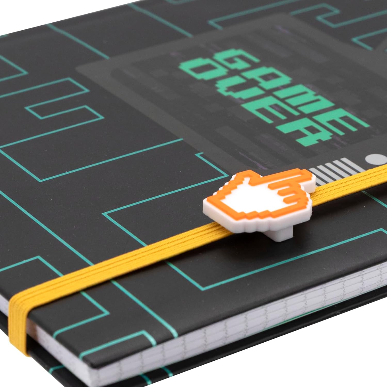 Quaderno alla moda per la scuola, lo studio e l'ufficio Design accattivante in turchese e nero, con una TV retrò e la scritta "GAME OVER". Quaderno grande 14,8 x 21 cm (DIN A5), per prendere appunti, imparare o visualizzare. Quaderno con 2 segnalibri e chiusura ad elastico Con 128 pagine a quadretti in carta certificata FSC Mix da 80 g/m²