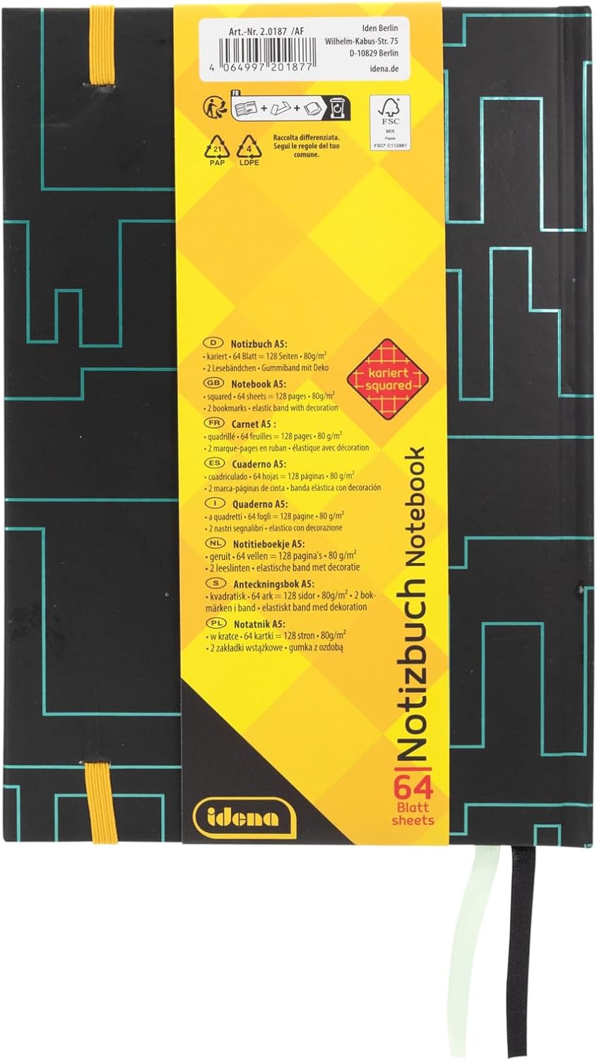 Idena 20187 - Quaderno A5, Design Gaming, 128 pagine a quadretti, 80 g/m², con elastico e 2 nastri lettura, FSC-Mix