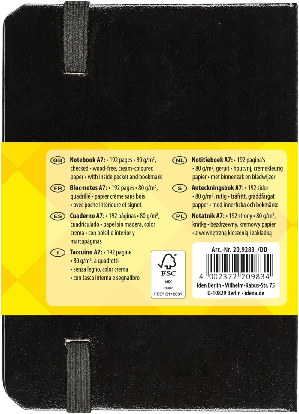 Quaderno A7 192 pagine Carta: 80 g/m² alta qualità Colore: Nero Con tasca interna e segnalibro