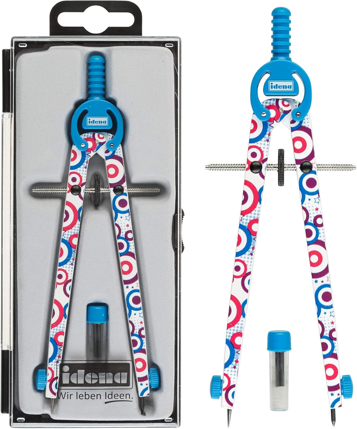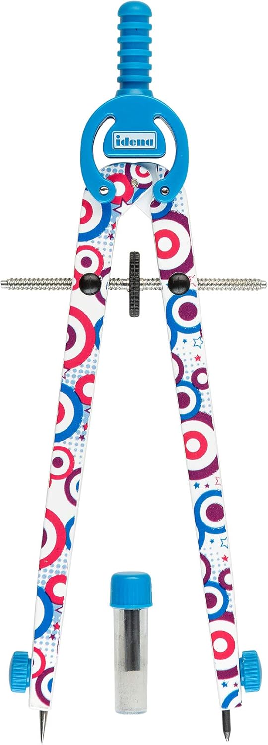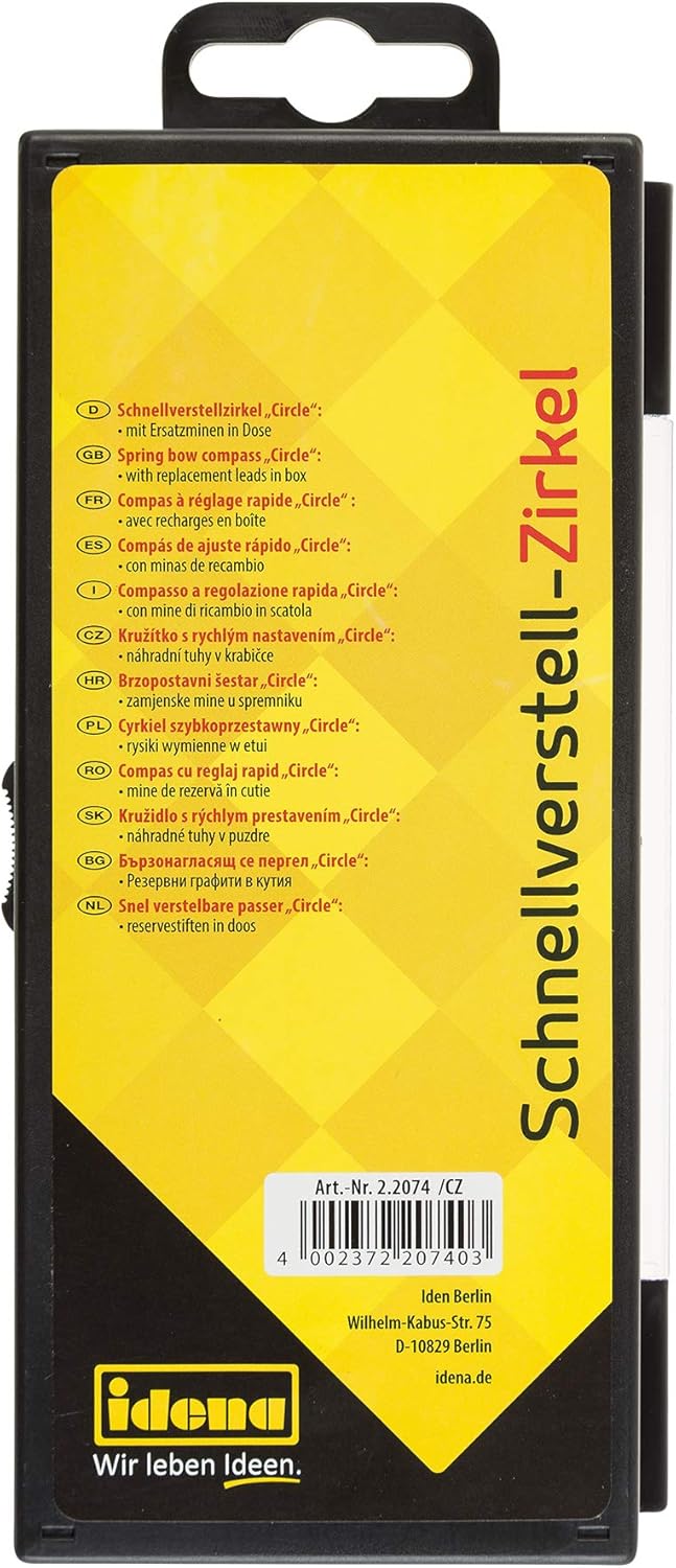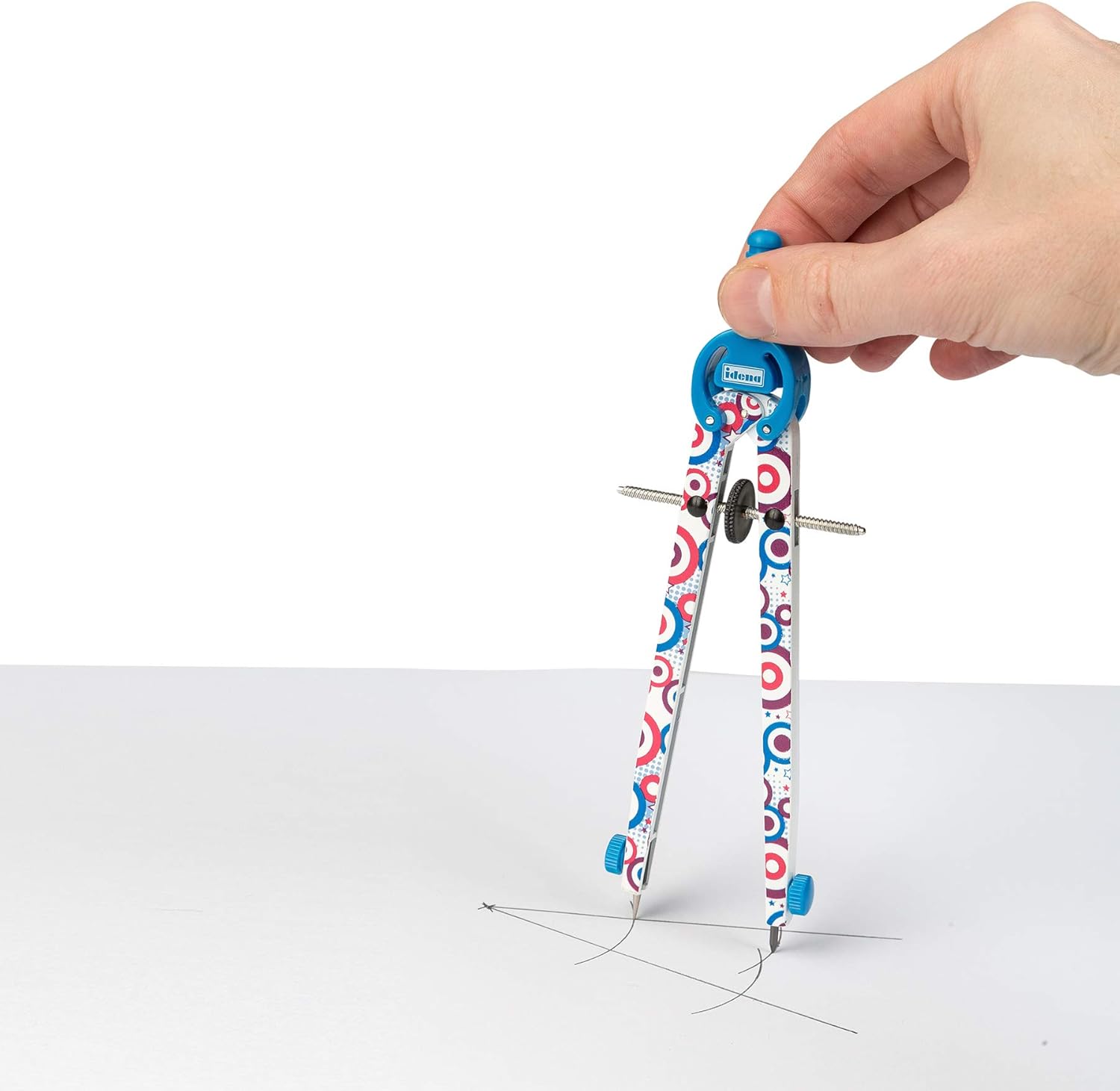 Cavi di ricambio inclusi nella scatola La bussola a regolazione rapida può cambiare dimensione molto velocemente, può essere posizionata alla larghezza desiderata grazie all'asta che ruota automaticamente. In un piede della bussola è presente una punta metallica per fissare il dispositivo sulla carta. Portamine all'estremità del secondo braccio Bussola e mine di ricambio Confezionate in una custodia per una protezione ottimale durante il trasporto