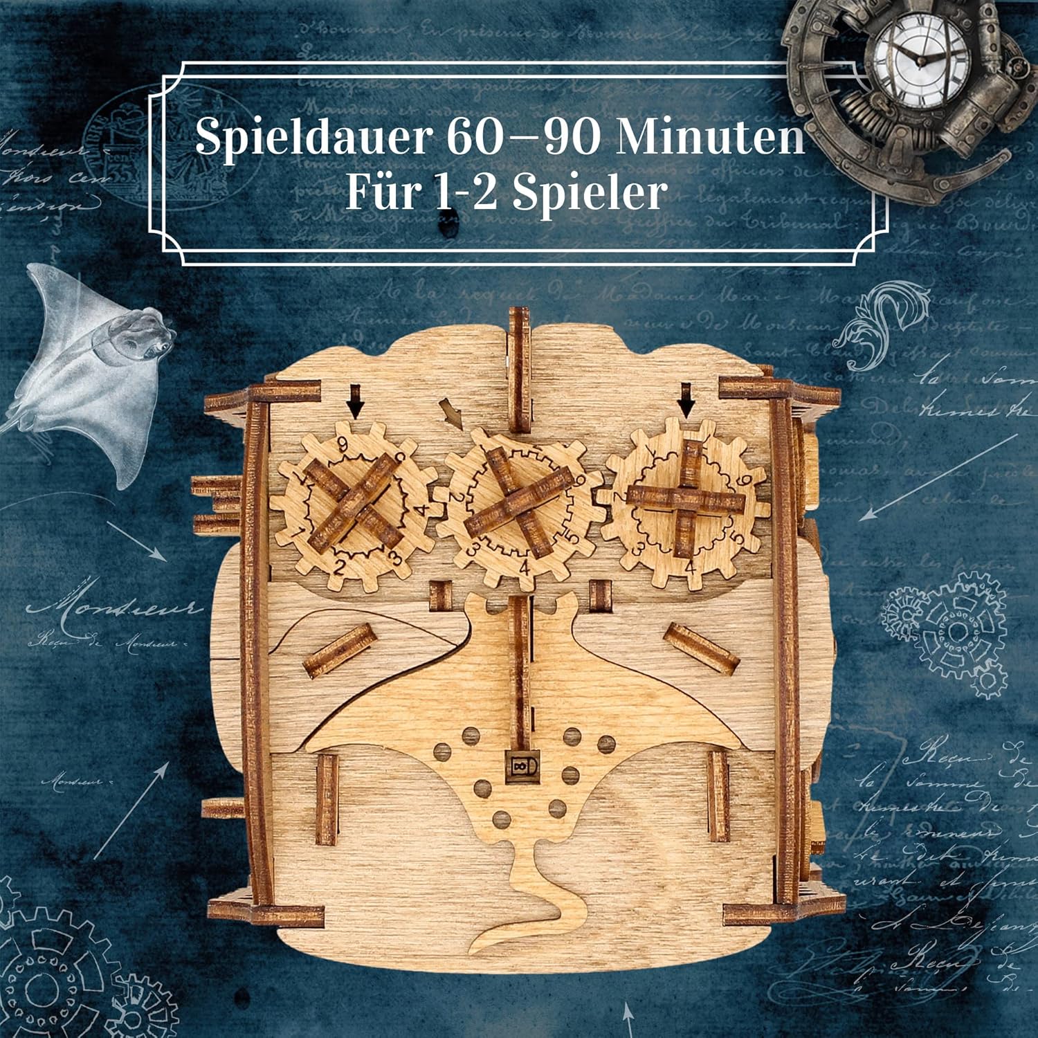 🔑 GIOCO ESCAPE ROOM - iDventure Cluebox Nautilus del Capitano Nemo combina l'emozione di una stanza di fuga con avvincenti enigmi del QI e offre un'avventura incomparabile per gli amanti dei puzzle. Decifra codici, risolvi enigmi impegnativi e scopri segreti nascosti mentre ti fai strada attraverso i diversi livelli della nostra scatola puzzle. Il puzzle in legno per adulti e adolescenti è adatto per 1-2 giocatori dai 14 anni in su. 🌊 STORIA EMOZIONANTE - Secondo la leggenda, il capitano Nemo avrebbe chiuso il segreto del suo sottomarino Nautilus nella scatola di legno. Riuscirai a risolvere l'enigma del leggendario capitano? La scatola del puzzle ti aspetta per aprirla. ♻️ VERSATILE - Ci vogliono 60-90 minuti per risolvere il puzzle 3D Nautilus del Capitano Nemo. Puoi quindi rimontare la scatola degli indizi in modo che altri giocatori possano risolverla. Cluebox IQ Puzzle non è solo un gioco, ma anche un elegante accessorio per la casa realizzato con il miglior legno di betulla tagliato al laser. Con il suo attraente design in legno, questa scatola puzzle attira l'attenzione ed è un'ottima idea regalo. Dimensioni della scatola puzzle in legno: 11 x 11 x 12 cm 🎁 IDEA REGALO CREATIVA - Stai già cercando un regalo di Natale adatto per i tuoi cari? Grazie ai meccanismi intelligenti, il nostro puzzle in legno per adulti farà battere più forte il cuore di ogni amante dei gadget e può essere utilizzato anche come scatola puzzle per regali in denaro. Le dimensioni dello scomparto segreto: 2 x 2 x 4 cm 🏆 RICOMPENSA - I nostri giochi di fuga per adulti e adolescenti hanno tutto! Come ricompensa per aver risolto l'Escape Box, potrai immortalare il tuo nome sul nostro Wall of Fame. Il nostro gioco di fuga offre un'esperienza coinvolgente con un livello di difficoltà simile a un gioco di uscita avanzato. La sfida definitiva della scatola puzzle ti sta aspettando!