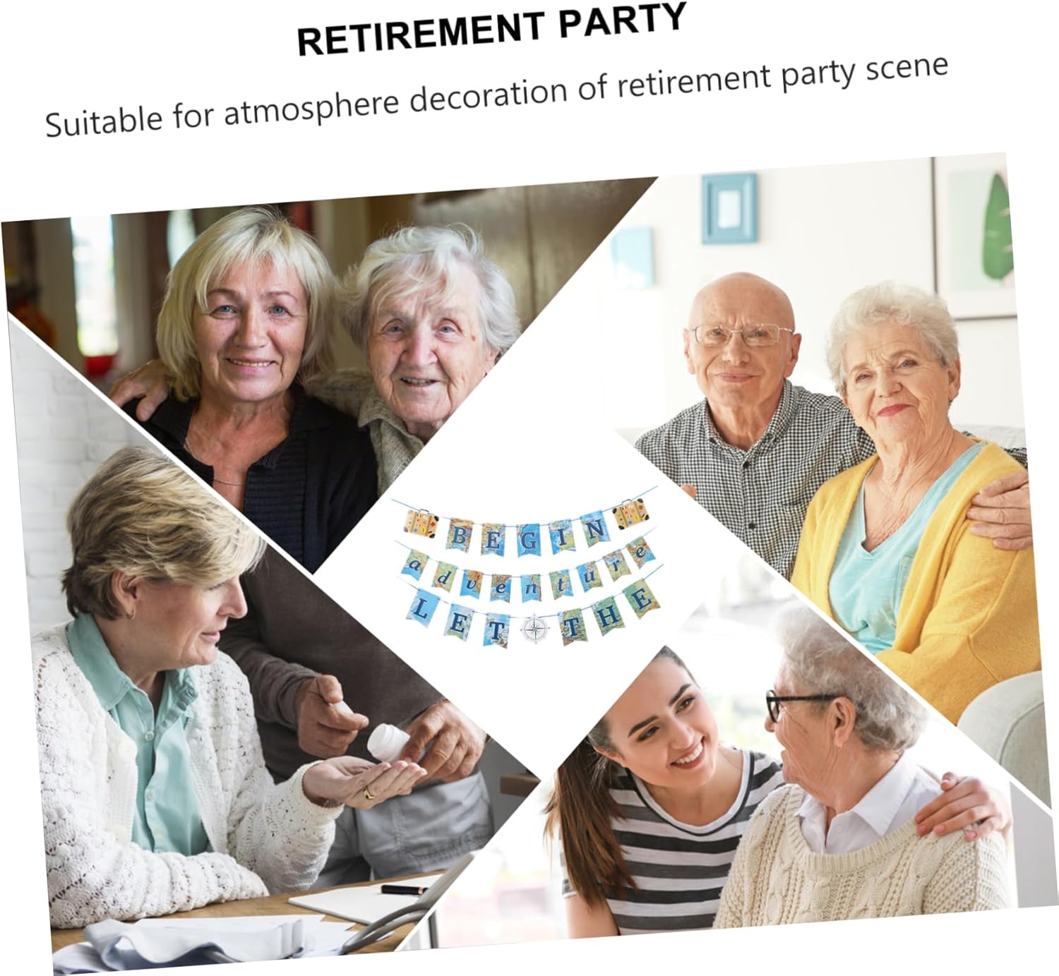 Festa: striscione per pensionamento, striscione per pensionamento, corda appesa facile da usare e adatta alla tua festa. Forniture per feste: realizzate in materiale cartaceo, solido e durevole da usare. Oggetti di scena da appendere al muro: lo striscione sospeso può decorare la tua festa di pensionamento. Decorazioni per feste da viaggio: appese a corde facili da usare e aggiungono colore alla tua festa. Ghirlanda da viaggio: striscione “che l'avventura abbia inizio”. La macchina per il taglio della carta materiale stampa con motivi chiari.