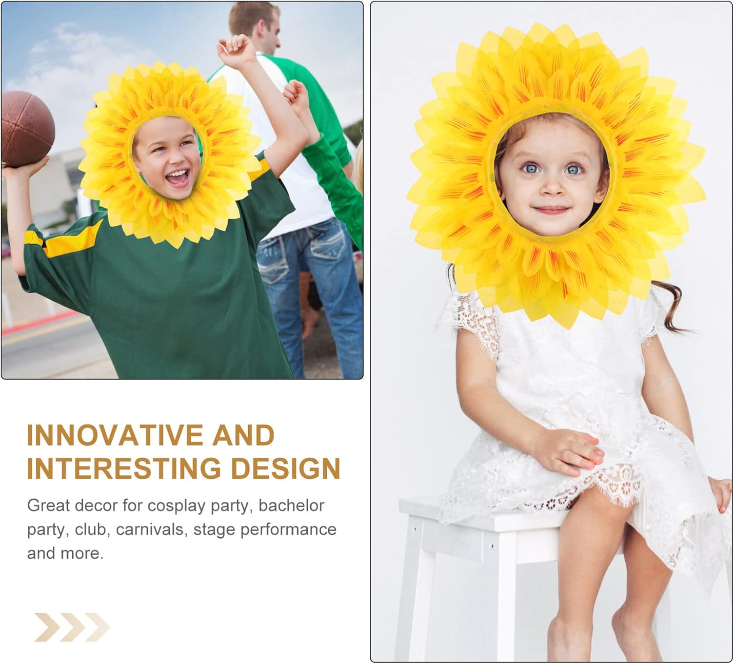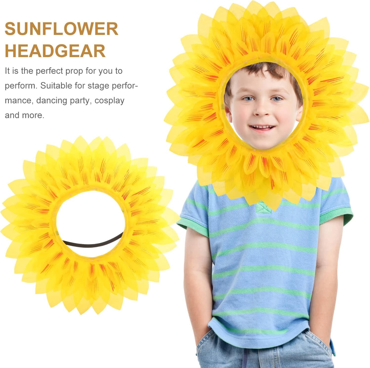 🌻🌻Divertente copricapo da girasole in costume da girasole con accessori di scena in costume a fiori gialli per giochi di feste di compleanno di festival di danza novità e design divertente, attirando la folla, ti porterà buon umore e nuove sensazioni. 🌻🌻 DIVERTENTE COSTUME DA GIRASOLE, COSTUME DA FIORE PROPOSTI DI PERFORMANCE PER GIOCHI FESTIVAL, FESTE, BAMBINI, ADOLESCENTI, ADULTI Interessante copricapo girasole, facile da indossare e da togliere, è l'accessorio che fa per te. 🌻🌻Realizzato in buon materiale per un uso pratico e duraturo, non sbiadisce e non si rompe facilmente. Indossa un costume da girasole per feste aziendali, festival dei girasoli, Halloween, Natale, feste di compleanno, spettacoli scolastici 🌻🌻È anche un oggetto di scena interessante nel gioco, ti porterà popolarità nelle feste e nei giochi. Realizzato in buon materiale, con un tocco confortevole, facile da usare e da usare. Bellissime aggiunte al tuo outfit, puoi indossarle per goderti la felice festa. 🌻🌻Adatto a parchi, feste aziendali, feste annuali, matrimoni, feste di Halloween, questo divertente set di oggetti di scena per costumi da girasole è facile da indossare e da togliere, è realizzato in poliestere, leggero e .