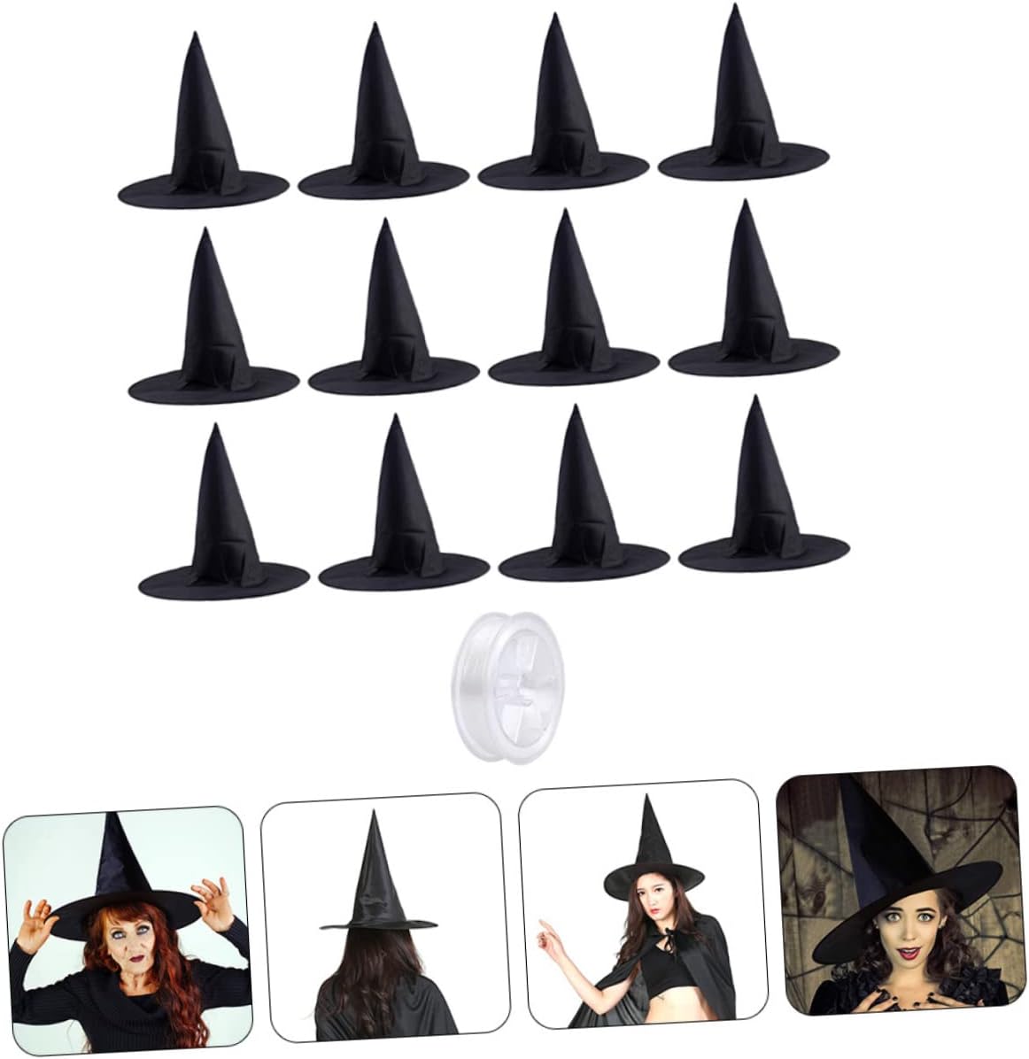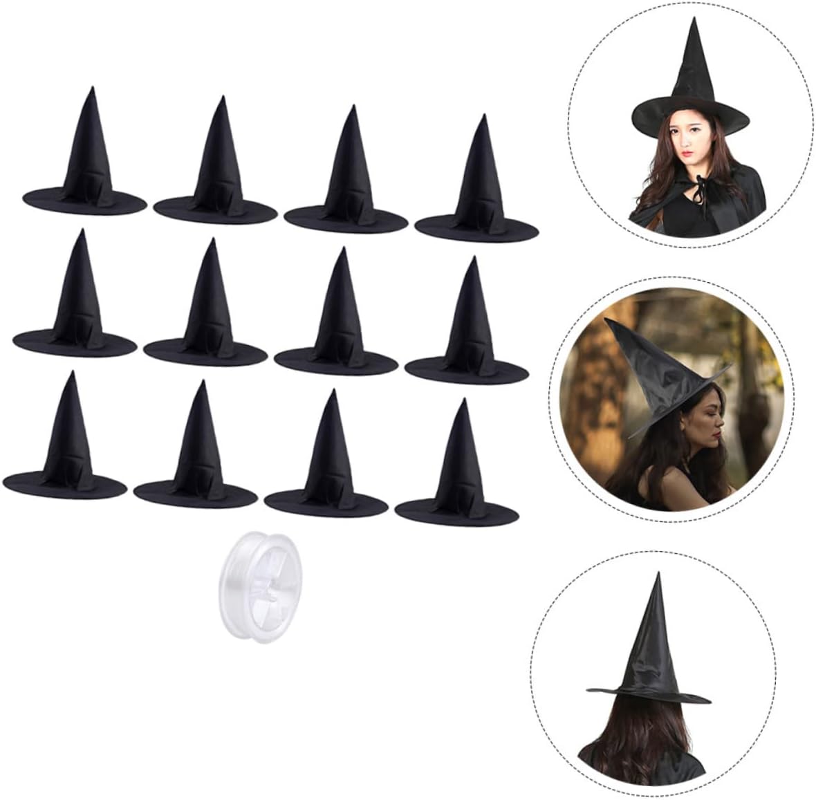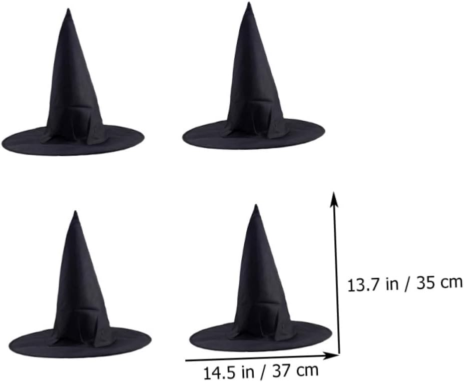 Elenco dei pacchetti 12 x cappelli da strega di Halloween 1 x rotolo di lenza Caratteristiche - Colore: nero Cappello di Halloween cosplay - Dimensioni: 37,00x35,00x20,00 cm/14,54x13,76x7 Cappello da vampiro per. -materiale: cappelli da strega di stoffa -ha una vasta gamma di usi e può essere utilizzato in varie occasioni, come feste di Halloween, feste di trucco, carnevali, decorazioni cosplay, cappello da strega per Halloween. - Lo stile unico può aggiungere un'atmosfera festosa e portare divertimento ai tuoi cappelli da festa. -Halloween chic per i tuoi amici e familiari per renderli più divertenti e sorprendere con un accessorio per costume da strega. - Può rendere l'atmosfera di Halloween più intensa, può anche farti distinguere dal cappello del costume da strega di Halloween. - Il design generale è elegante, adatto alle feste di Halloween per darti un aspetto affascinante e un cappello da strega decorativo diverso. descrizione cappello da festa di Halloween un cappello da strega in stile Halloween creativo e versatile. Cappello da costume da mago e può essere un cappello da strega decorativo anche nell'uso quotidiano, può essere indossato per feste cosplay a tema. Costume cosplay che indossa il cappello da strega, puoi intrattenere i tuoi amici e ospiti per mostrare il tuo umorismo