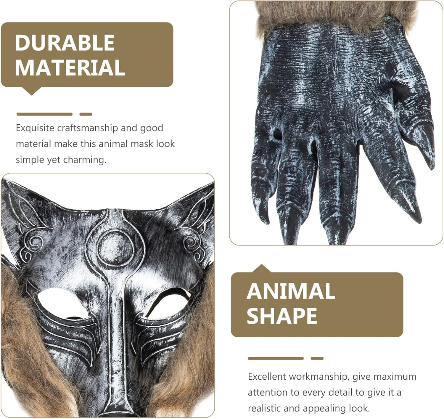 elenco dei pacchetti 1 maschera con testa di lupo 1 paio di specifiche -dimensioni: 28,00x22,50x7,00 cm;/11,00x8,84x2 maschera decorativa. - Colore: oggetti di scena per cosplay di Halloween in colori assortiti - Materiale: plastica, maschera per feste di Halloween in tessuto peluche - Comodo per godersi le feste di Halloween. che si tratti di una festa a tema animale semplicemente una maschera cosplay di Halloween. - Una taglia adatta alla maggior parte delle persone, ti offre un piacevole utilizzo del design del lupo. - La squisita fattura e il buon materiale conferiscono a questa maschera animale un aspetto cosplay maschera da lupo semplice ma adorabile. - ottima fattura, prestare la massima attenzione ad ogni dettaglio per conferirgli un aspetto realistico ed accattivante. - Puoi metterci qualsiasi decorazione, portare più atmosfera da festival insieme alla maschera e agli artigli del lupo. descrizione delle merci cosplay Questo è un set di maschere e copricapo di lupo di Halloween. Il costume da animale può anche essere uno scherzo per cosplay adatto a feste in maschera, feste di Halloween e altre occasioni. abbastanza comodo da usare. Halloween per adulti con un design spaventoso, questa maschera di Halloween è spaventosa e molto realistica