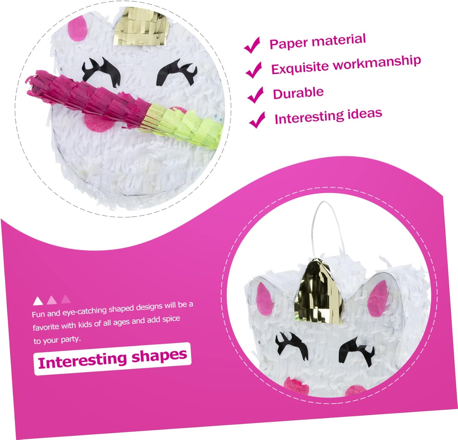 Giocattoli per bambini: la tradizionale pinata messicana è progettata a forma di unicorno, adorabile e creativa. Giocattolo per: riempire facilmente con peluche pinata come pinata, caramelle, mini giocattoli, coriandoli, ecc. Pinata di carta per bambini: sorprendi i tuoi ospiti con un'attività divertente e dolcetti, interessanti e divertenti. Fiesta pinata mini: ideale per una festa a tema messicano, una festa, una festa del cinco de mayo, una festa di compleanno e altro ancora. Pinata per feste messicane: il design a forma di unicorno è elegante e adorabile, che aggiunge bellezza e colore alla tua casa.