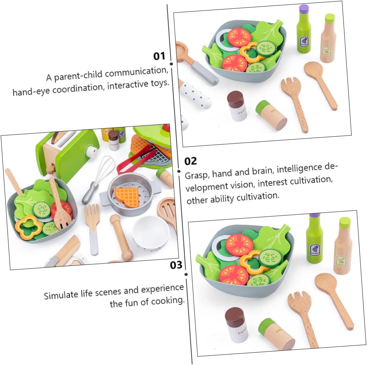 Giocattolo di interazione: tieniti lontano dallo schermo elettronico e coltiva sano. Giocattolo da cucina: resistente agli urti e difficile da deformare e rompere. Mini set da cucina: perfetto per sviluppare il cervello dei bambini ed esercitare le loro capacità cognitive. Giocattolo interattivo genitore-figlio: il design unico lo rende più adorabile e attraente. Giocattoli per stoviglie da cucina: vernice a base d'acqua dai colori tenui, insapore ed eccitante, sentiti libero di giocare.
