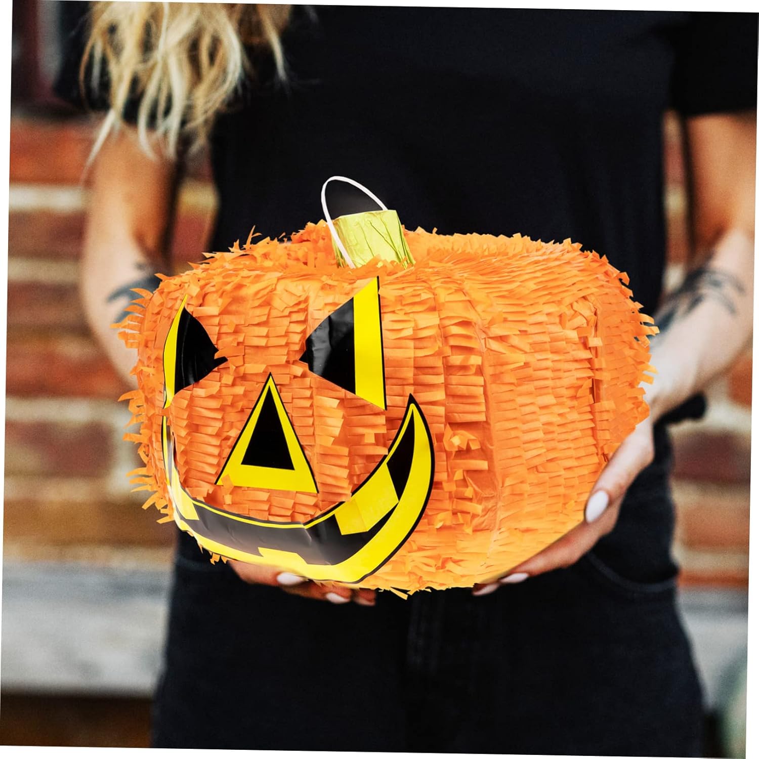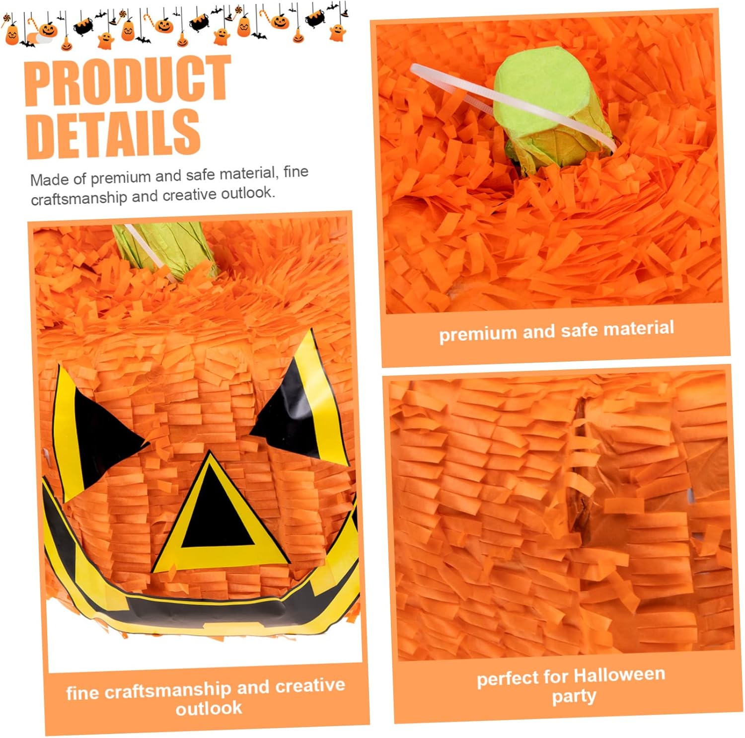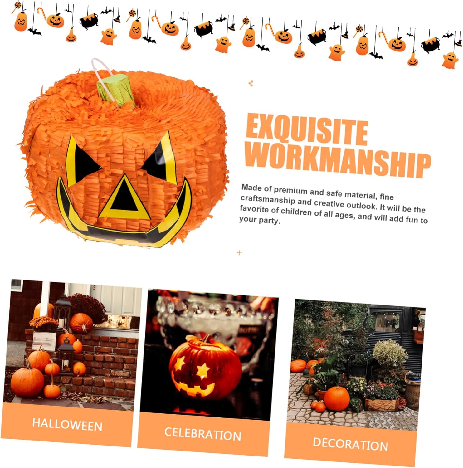 Decorazioni per esterni: pinata di zucca di Halloween per adulti e bambini, secchi di zucca preriempiti per Halloween, Ringraziamento, decorazioni per feste autunnali, oggetti di scena, compleanno di ottobre, divertenti giochi spettrali. Lanterne da esterno: abiti per riunioni di famiglia, feste di festival, feste di Halloween, ecc. Decorazioni da appendere per feste: gioca con la tua famiglia, i tuoi amici e i tuoi compagni di classe, ti divertirai molto. forniture per feste di Halloween Decorazioni per soffitto: questa tradizionale pinata di Halloween è fatta di carta e decorativa. La nostra amichevole decorazione di pinata di carta jack-o-lantern da appendere per Halloween presenta la classica zucca di Capodanno con una vivace pignatta, realizzata in materiale sicuro e durevole, pregevole fattura e aspetto. pinata