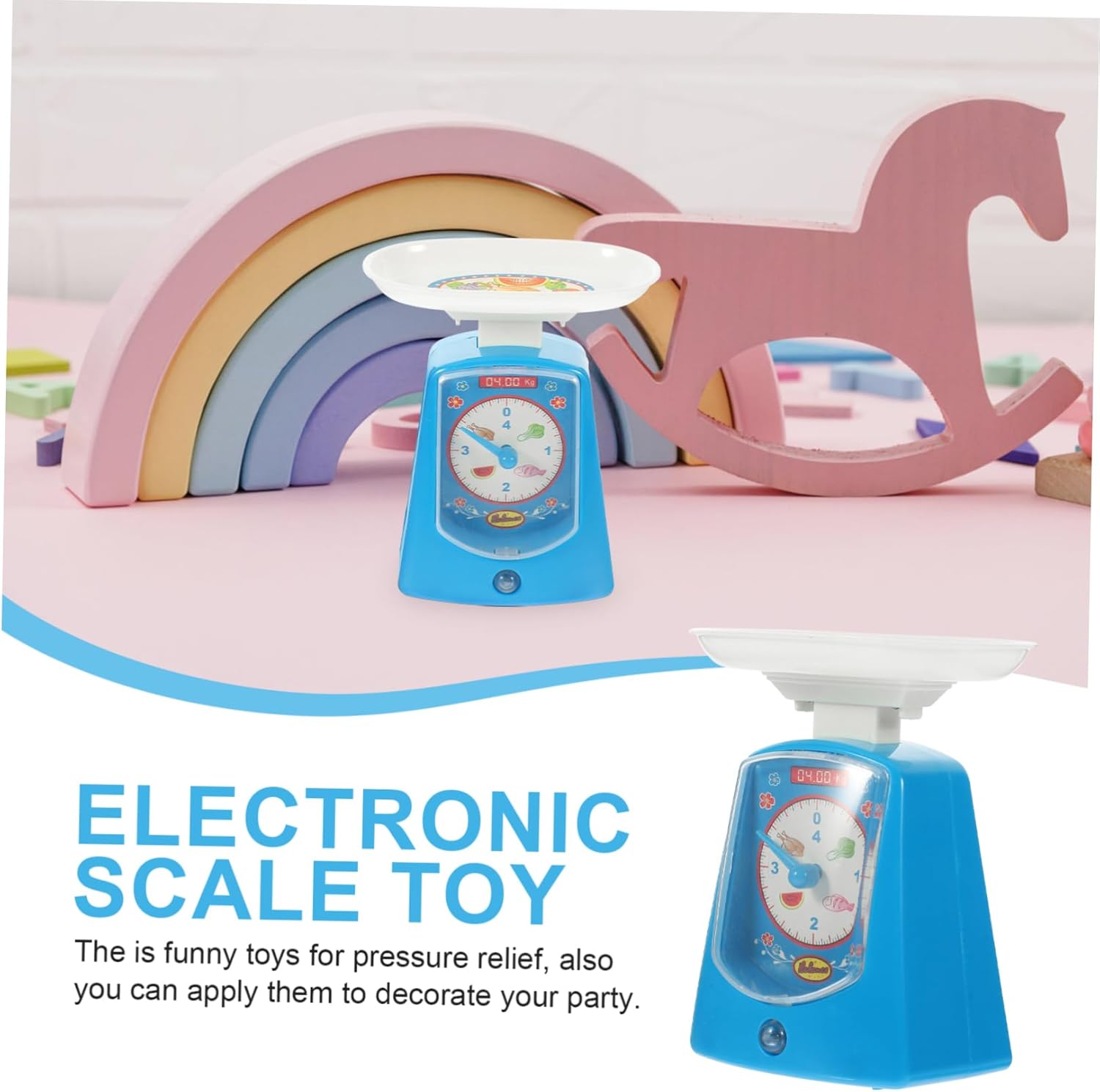 Bilancia elettronica di simulazione: simula il reale degli elettrodomestici, lascia che il bambino comprenda l'esperienza. Giocattolo: con il design dei cartoni animati, i tuoi bambini lo adoreranno. Equilibrio per i bambini: gioca con i giocattoli della casa, giochi di ruolo, può coltivare l'abilità pratica dei bambini. Giocattolo per bambini: è ora di giocare a questo gioco con tuo figlio per migliorare la relazione genitore-figlio. un regalo per i bambini. Giocattoli per utensili da cucina: materiale plastico, superficie liscia, senza sbavature, sicuri per i bambini.