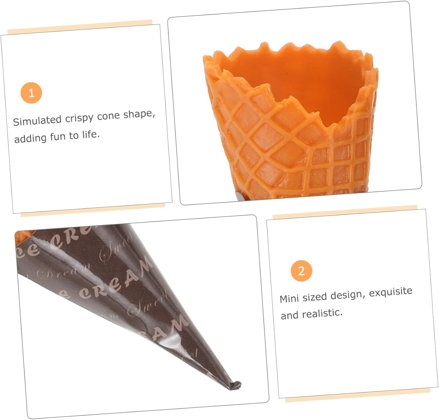 A differenza del gelato, questi oggetti alimentari artificiali sono fatti per durare, consentendoti preservare i tuoi progetti creativi e i tuoi senza preoccupazioni, giocattoli gelato , oggetto a forma cono gelato Realistici oggetti per coni gelato: goditi l'aspetto del gelato senza sporcare, grazie a questi oggetti artificiali per cibo servono per giochi finzione o per scopi decorativi, giocattoli per gelato, oggetti artificiali per cibo Migliora la creatività: questi oggetti per gelato simulato sono per gli appassionati del da te, aiutando a sviluppare la creatività e capacità motorie in divertente e coinvolgente, cono gelato simulato, dessert simulato Dall'arredamento del negozio dolciumi ai modelli simulazione dessert alimentari, questi oggetti sono abbastanza versatili da soddisfare varie esigenze, tra cui fotografia e gioco, oggetti cibo imitazione, cono gelato realistico Decorazione versatile: usa questi finti oggetti per l'esposizione gelati per migliorare l'arredamento del negozio dolciumi, decorazioni per feste o come giocattoli realistici per cibo da gioco per i per divertirsi con gioco finzione, oggetti per gelato, dessert