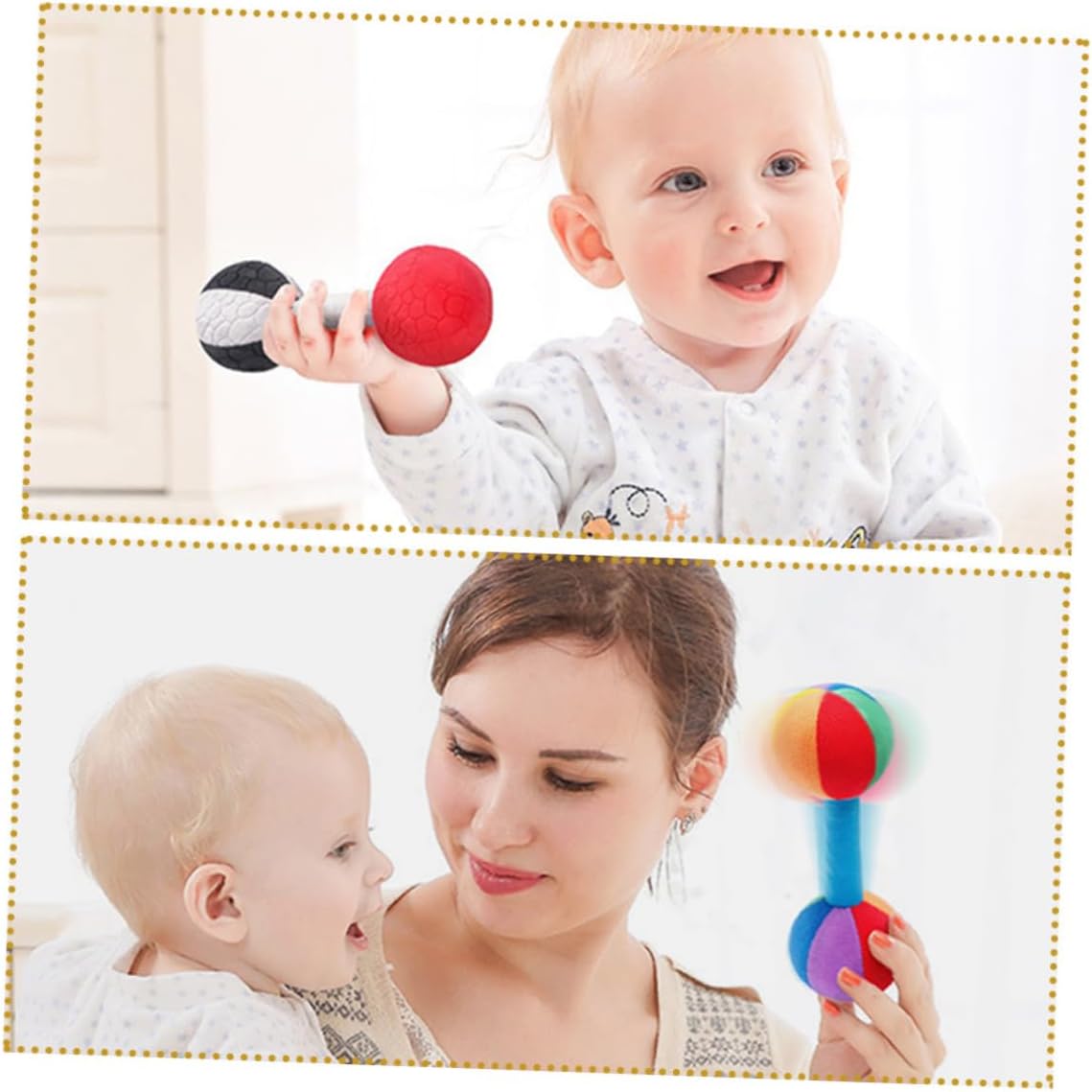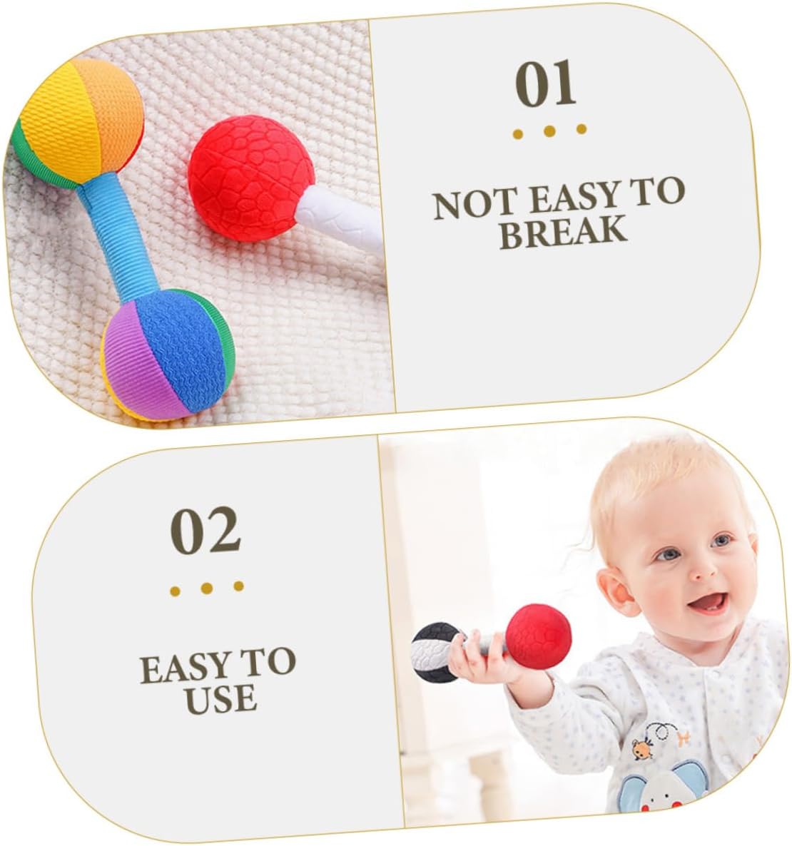Realizzato con pregevole fattura, il giocattolo Dumb-Bell può essere applicato per un tempo duraturo e molte volte. Interattivo: può essere giocato con i genitori o con altri bambini, promuovendo abilità sociali e interazione. Il design leggero e la maniglia ergonomica rendono facile per i bambini tenerlo in mano e giocarci. Aiuta i bambini a sviluppare capacità motorie fini e grossolane, migliorando le loro capacità fisiche. Il può abbracciare i giocattoli con le , calmarli e aiutarlo ad addormentarsi più facilmente.