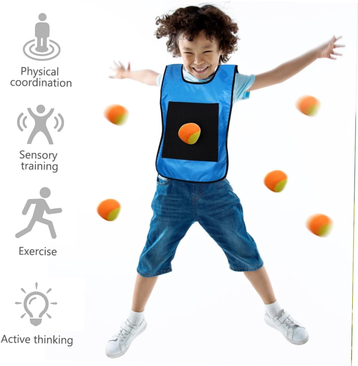 Gilet adesivo e giocattoli con palline: una festa perfetta o un gioco di festival per divertirsi con i tuoi amici e familiari. Giocattolo con palla appiccicosa per esterni: è realizzato con buoni materiali e può servire il tuo bambino per molto tempo. Giocattoli per bambini piccoli - set di giochi di freccette - questo consente ai bambini di praticare la forma fisica, migliorare le loro capacità di pensiero e perfezionare la comunicazione genitore-figlio. Gilet con palla adesiva - set di palline morbide con gilet appiccicoso - capacità di comunicazione, cooperazione e risoluzione dei problemi coltivate e abilità di lancio e rimbalzo addestrate. Giocattoli per bambini piccoli: le palline sicure e flessibili non faranno mai male né romperanno niente e durante il gioco