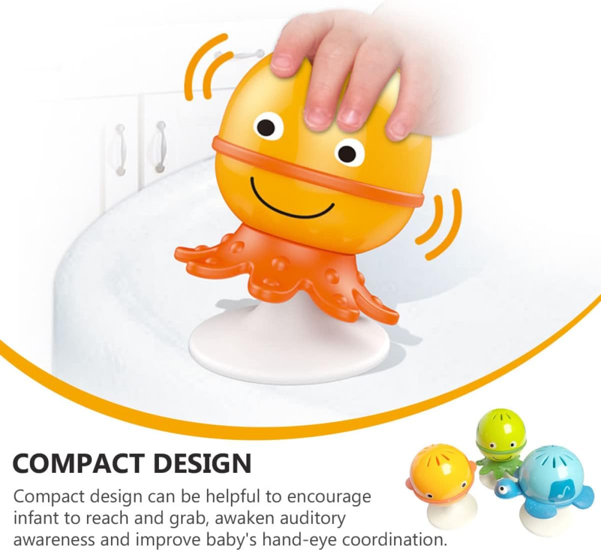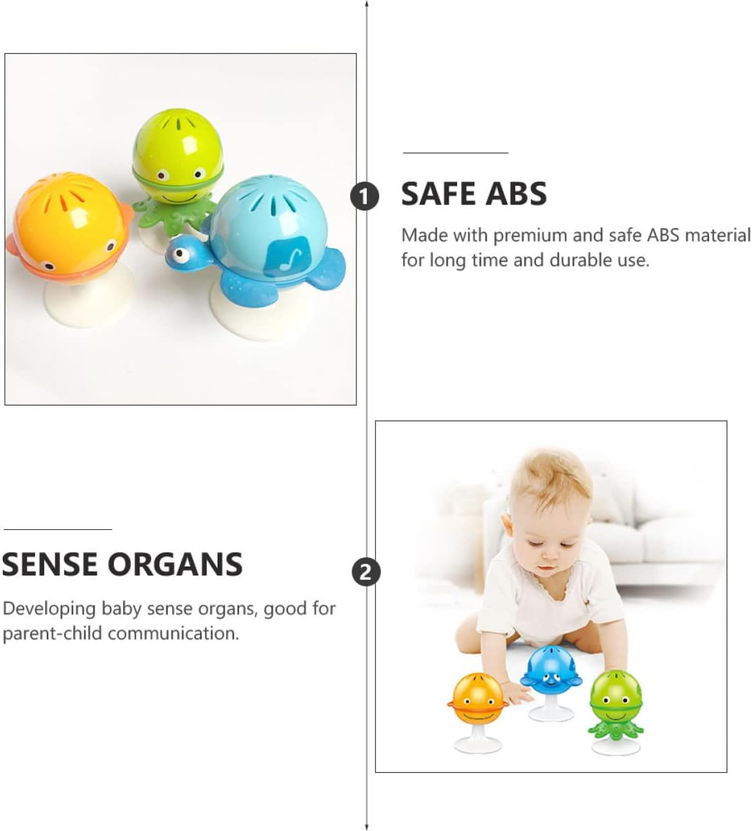Prodotto in materiale ABS di , durevole e sicuro per neonati, bambini piccoli e bambini che giocano. Design a forma di animale della serie Ocean con colori brillanti, può attirare l'attenzione del tuo bambino. Questo è un giocattolo a sonagli molto creativo e divertente con ventosa e può essere utilizzato durante la prima educazione. Adatto per far giocare i bambini e migliorare la loro sensazione visiva e uditiva, molto interessante e adorabile. Regali meravigliosi e pratici per neonati e bambini, a loro piacerà moltissimo.