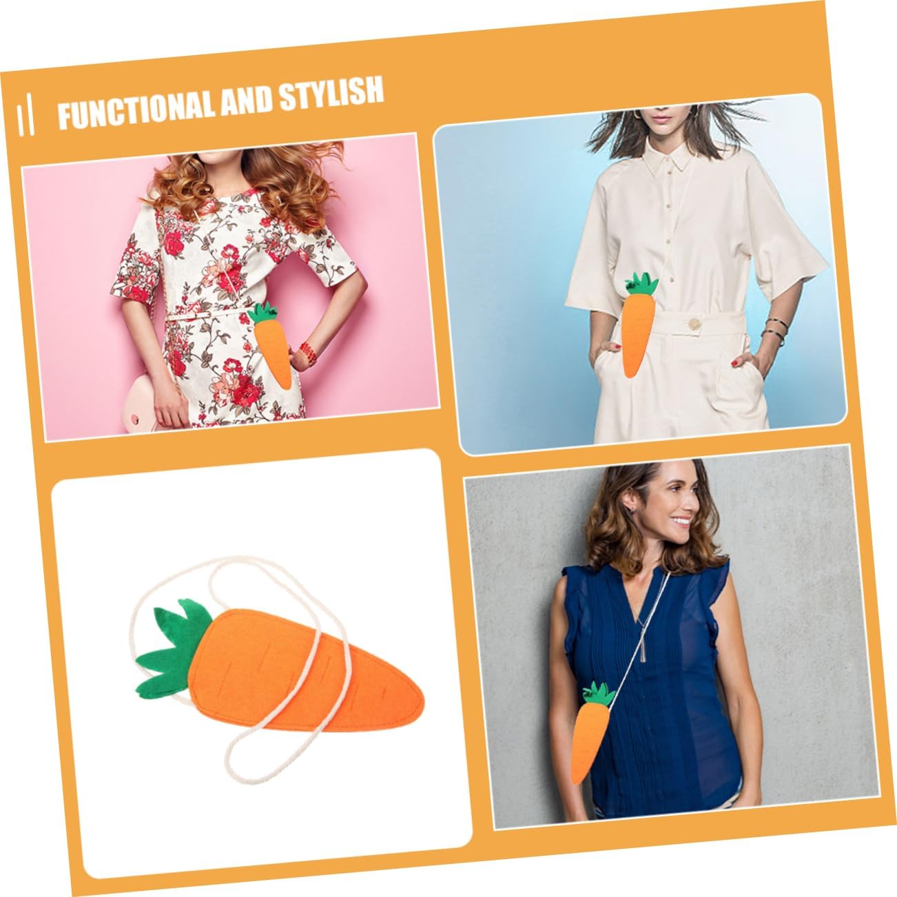 Affascinante tema delle carote: delizioso design a tema carota che incarna lo spirito di Pasqua e aggiunge un elemento giocoso a qualsiasi ensemble Design distintivo: il design unico e sugli occhielli assicura che il distingua con un accessorio elegante e divertente Per gli eventi di Pasqua: ideale per la decorazione e l'accessorio durante gli eventi e le feste di Pasqua, rendendolo un'aggiunta versatile a qualsiasi celebrazione Squisito artigianato: realizzato con meticolosa attenzione ai dettagli, garantendo un prodotto robusto Forma di carota : la forma di carota divertente e unica aggiunge un tocco di capricci