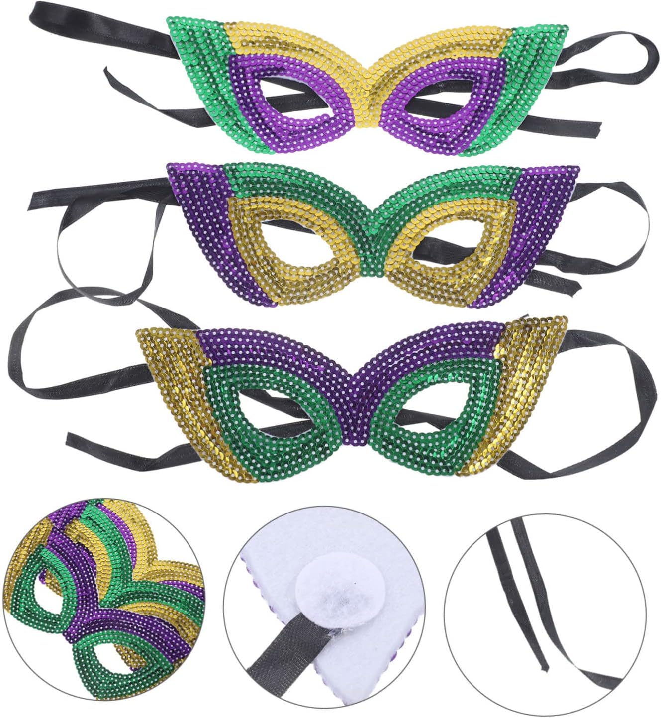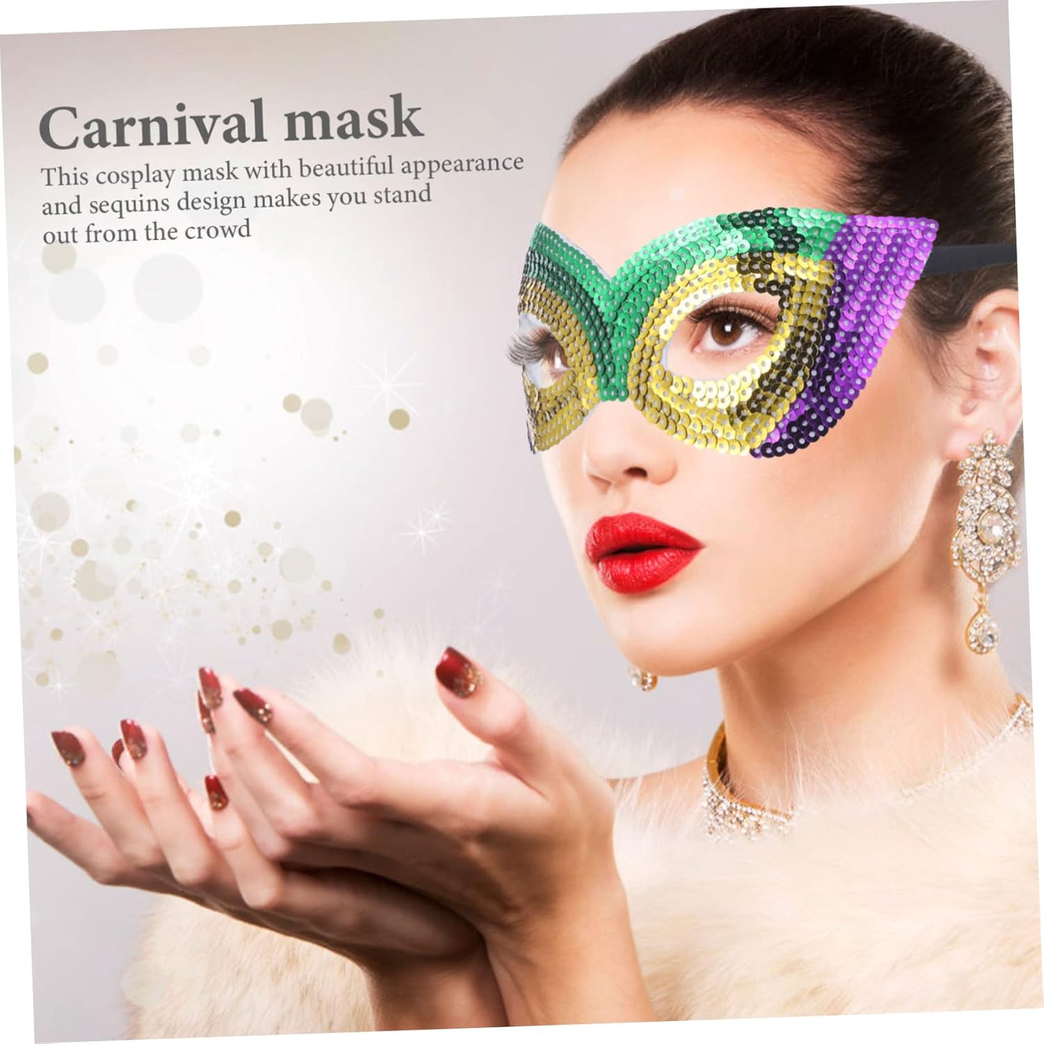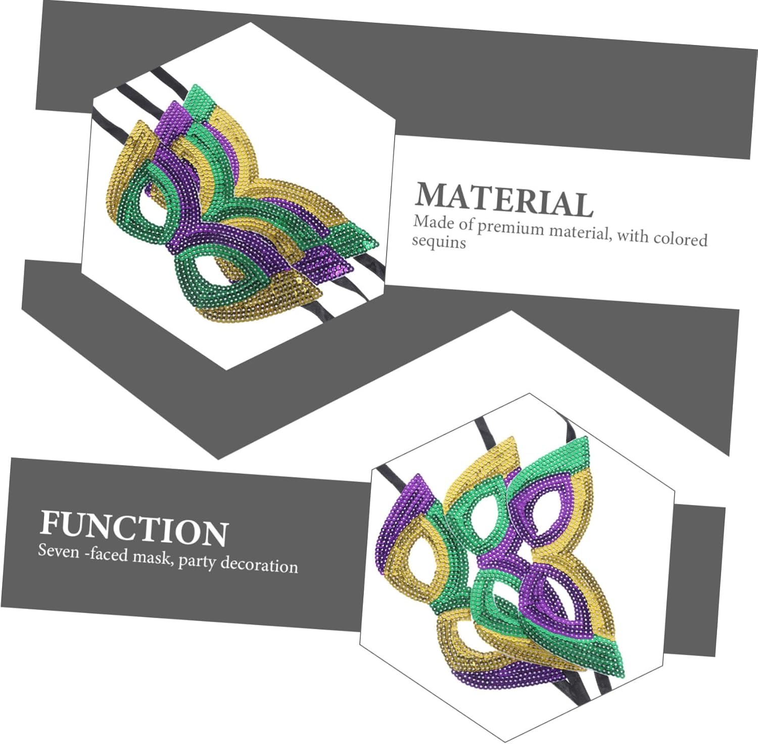 La confezione include 6 maschere di carnevale. Caratteristiche: dimensioni: 21,00x7,00x0,10 cm/8,25x2,75x0 maschere cosplay. - materiale: maschera di Halloween con paillettes - colore: maschere con paillettes di colori assortiti - questa maschera cosplay con aspetto e design con paillettes ti fa distinguere dalla massa delle maschere da festa cosplay. - Una meravigliosa maschera cosplay per donne e ragazze per Halloween, carnevale, ballo in maschera, ecc., accessorio per feste da ballo. - puoi indossare una maschera da ballo nella tua festa, che si tratti del carnevale di un'altra festa, divertendoti con una maschera di carnevale con paillettes. - una maschera decorativa per feste, adatta per feste in maschera, locali notturni, bar, ecc. maschera da ballo per donne. - Ottima decorazione per scattare selfie e foto con famiglie e amici, rendendola una maschera cosplay in maschera attraente e adorabile. descrizione maschere cosplay danzanti Questa maschera cosplay del Mardi Gras è caratterizzata dai tradizionali colori del carnevale del Mardi Gras, che rappresentano potere, fede e giustizia, i colori vivaci incontrano il tema del Mardi Gras e in linea con l'atmosfera del festival
