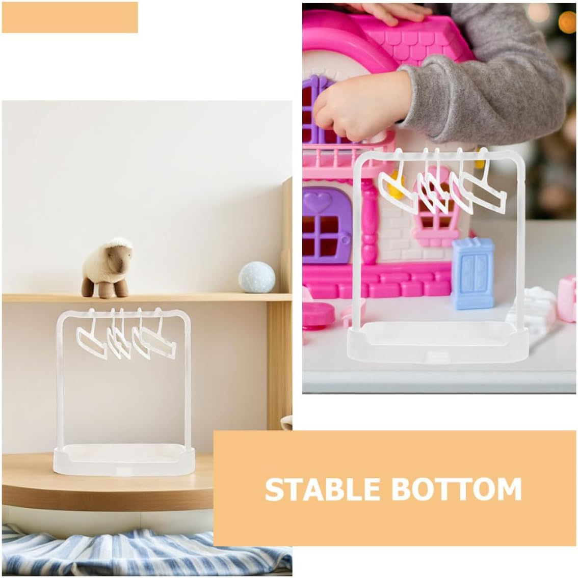 Appendiabiti multifunzionale: adatto non solo per bambole, ma anche per asciugare piccoli oggetti, migliorando l'efficienza dell'utilizzo dello spazio, grucce per armadi per bambole, grucce per mini bambole Tenuta affidabile: tiene saldamente in posizione i vestiti per bambole, previene la deformazione e mantiene il loro aspetto, pratica asta per appendere, mini grucce per bambole Massimizzato: progettato per un uso efficiente, ideale per asciugare piccoli oggetti e vestiti per bambole, appendiabiti portatile, gruccia ad asciugatura rapida Design compatto: garantisce una presa stabile dei vestiti per bambole, previene la deformazione e mantiene il estetica dei vestiti, stendibiancheria portatile, stendibiancheria Facile da usare: facile da montare e smontare, facilita la pulizia e il trasporto, clip per asciugare in casa, gruccia