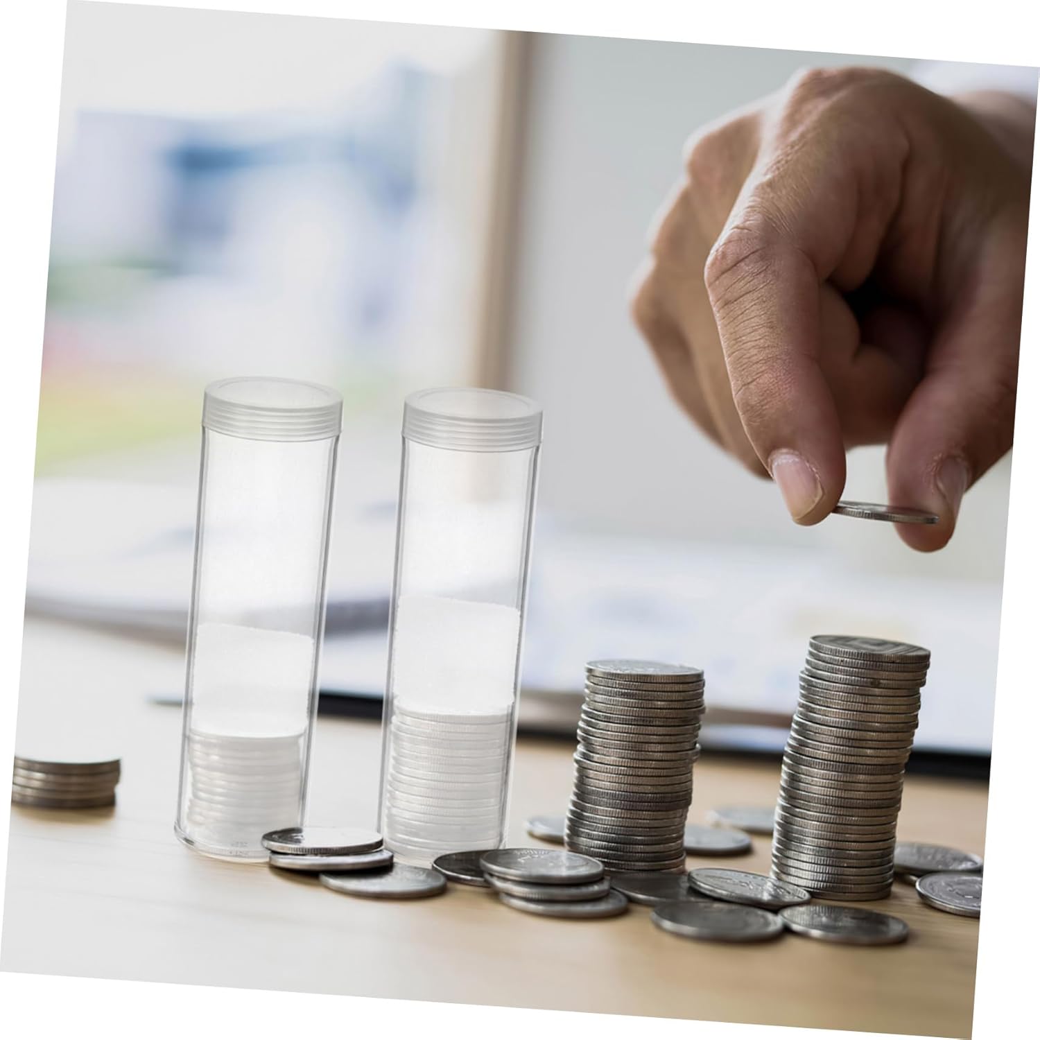 Elegante e pratico: questo tubo unisce estetica e funzionalità e migliora la presentazione della tua collezione di monete mantenendo le cose in ordine Design chiaro e accessibile: il tubo trasparente consente un'identificazione facile e veloce delle monete senza dover aprire il contenitore Ideale per diversi utenti: per collezionisti, banche o commercianti, questo tubo offre una soluzione pratica ed efficiente per conservare monete, custodia portamonete, tubo trasparente Scenari di utilizzo versatili: adatto a collezionisti, aziende e istituti finanziari. Questo tubo si adatta facilmente a varie applicazioni di conservazione delle monete, portamonete in plastica, contenitore per monete da gioco in plastica. Conservazione efficiente dei rotoli: questo tubo è adatto per conservare interi rotoli di monete, aiutandoti a organizzare e classificare la tua collezione senza sforzo, portamonete, organizzatore di monete.