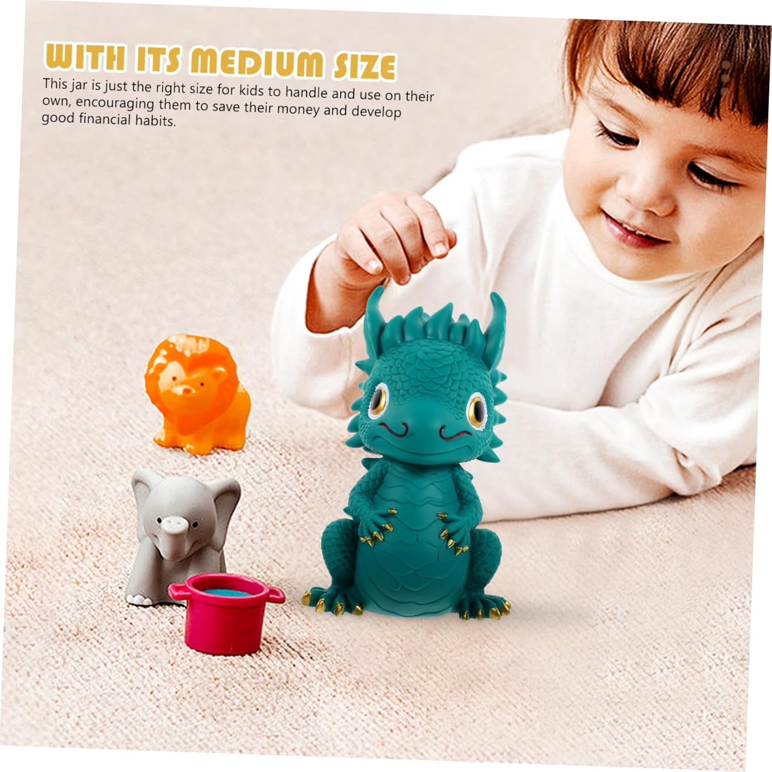 Barattolo di risparmio: ideale da regalare in occasioni speciali, compleanni, questo barattolo portamonete è un premuroso e memorabile, Dragon Desk Decor: sia che tu lo usi per conservare gli spiccioli o mostrarlo come un affascinante pezzo d'accento, questo barattolo di conservazione del drago renderà sicuramente e illuminerà la tua giornata, Drago per bambini: realizzato in vinile per una maggiore durata, i bambini possono facilmente imparare a gestire il denaro, Festival Cartoon Money Jar: l'elegante colore di questo barattolo aggiunge un tocco di raffinatezza e stile a qualsiasi stanza, rendendolo un ottimo pezzo decorativo per la tua casa o il tuo ufficio, A forma di drago Decorazione del drago di Capodanno: forma di drago carina e realistica, molto adorabile, capacità di stoccaggio per monete,