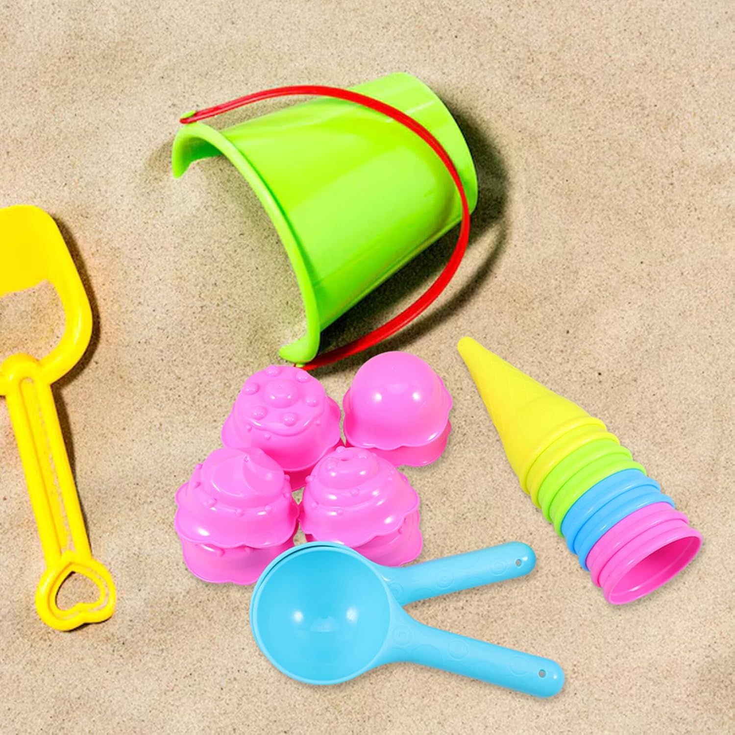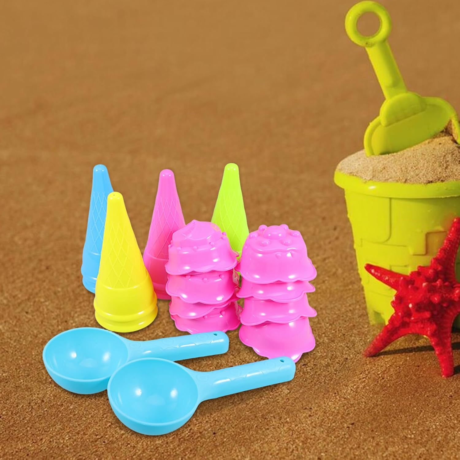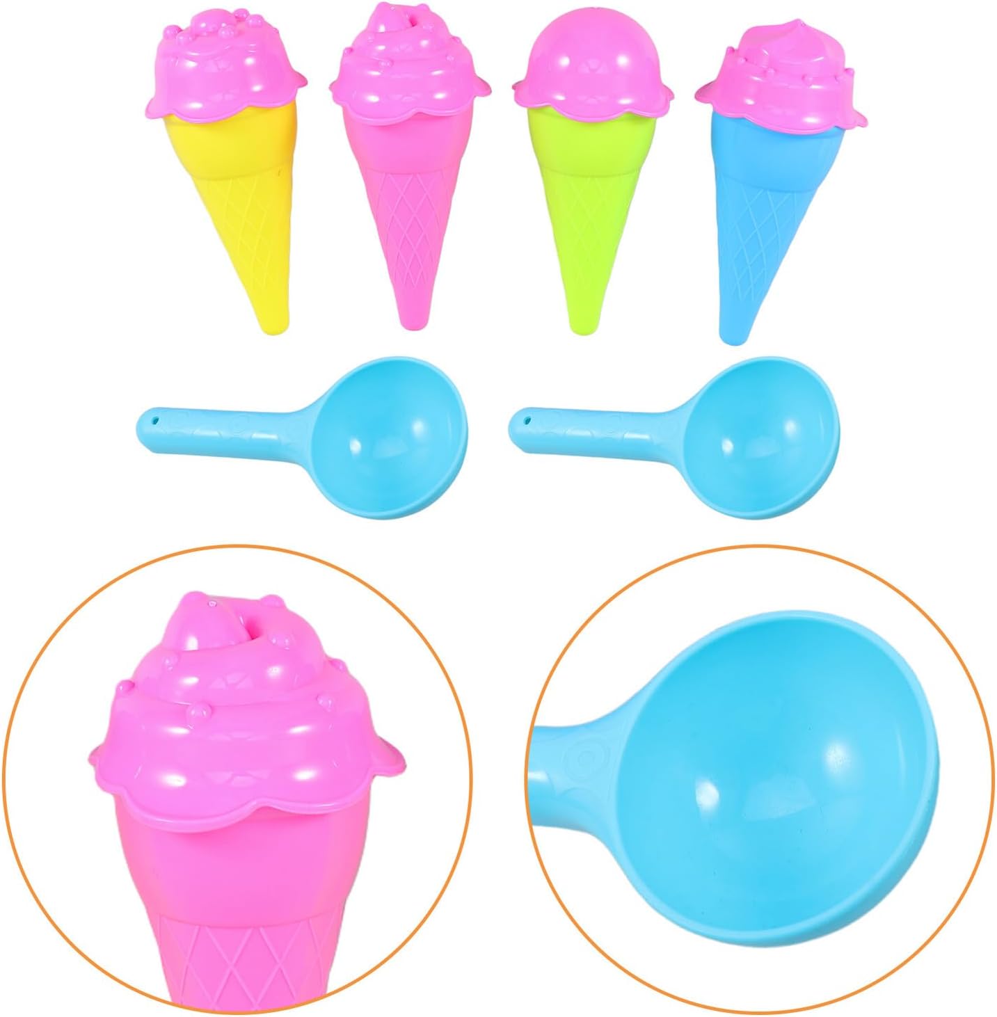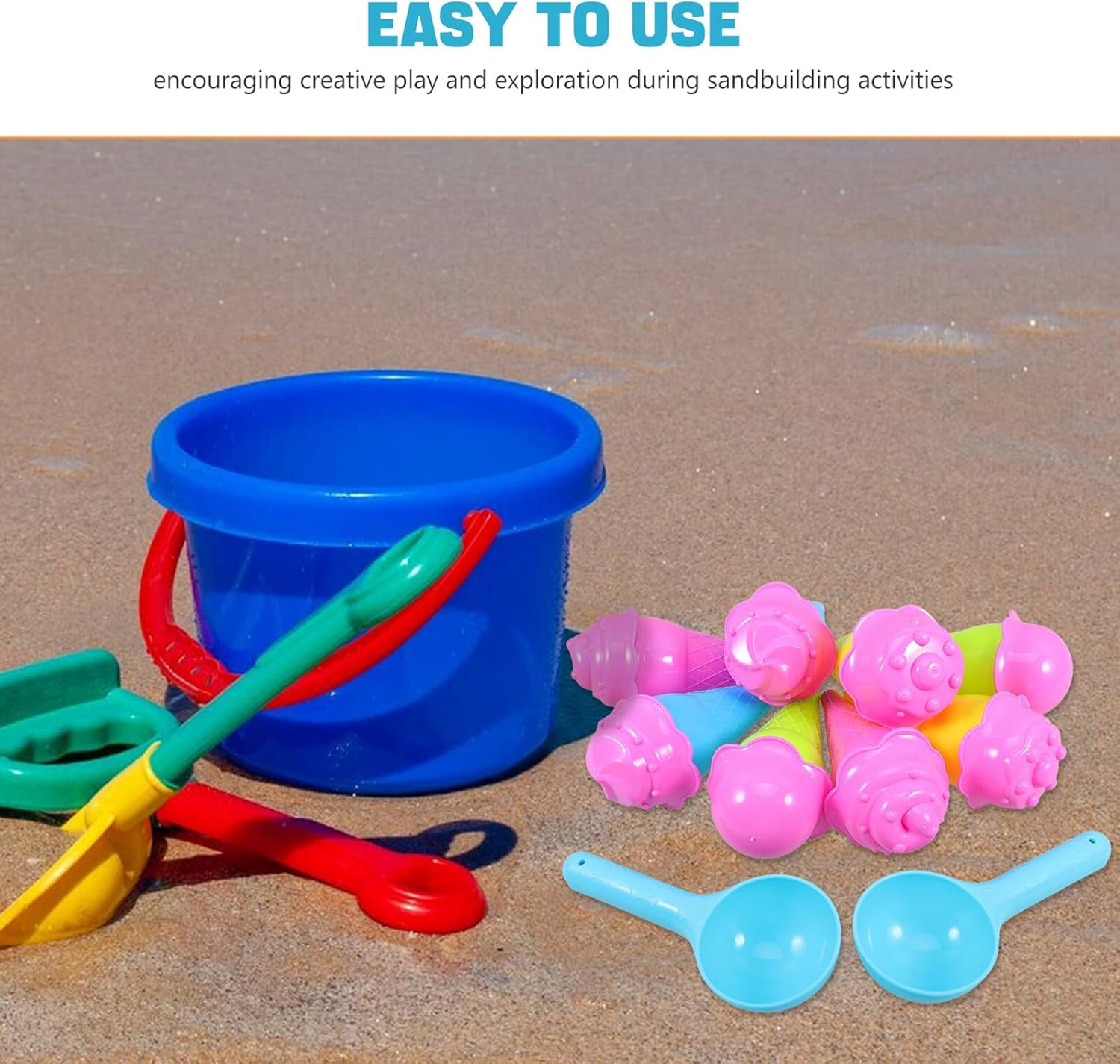 MULTIUSO: Adatto a vari ambienti, tra cui spiagge, sabbiere e aree giochi interne, offre divertimento senza fine, giocattoli con la sabbia, giochi di ruolo con gelati per il design creativo: le forme ispirate ai coni gelato stimolano l'immaginazione e incoraggiano la creatività e la scoperta nelle attività di costruzione con la sabbia, giochi con sabbia all'aperto e in plastica Divertimento interattivo: promuove il legame familiare con giocattoli che consentono a genitori e bambini di giocare insieme disegni fantasiosi con la sabbia, giocattoli da spiaggia e uso esterno con coni gelato Legame genitore-figlio: crea esperienze condivise indimenticabili fantasiose sculture di sabbia con i tuoi piccoli, giocattoli di sabbia, gelato, giocattoli di sabbia di gelato Materiale adatto ai bambini: questi giocattoli sono fatti di plastica, sicuri, leggeri e facili da maneggiare per le mani dei più piccoli, stampi per sabbia da spiaggia, stampi per coni gelato