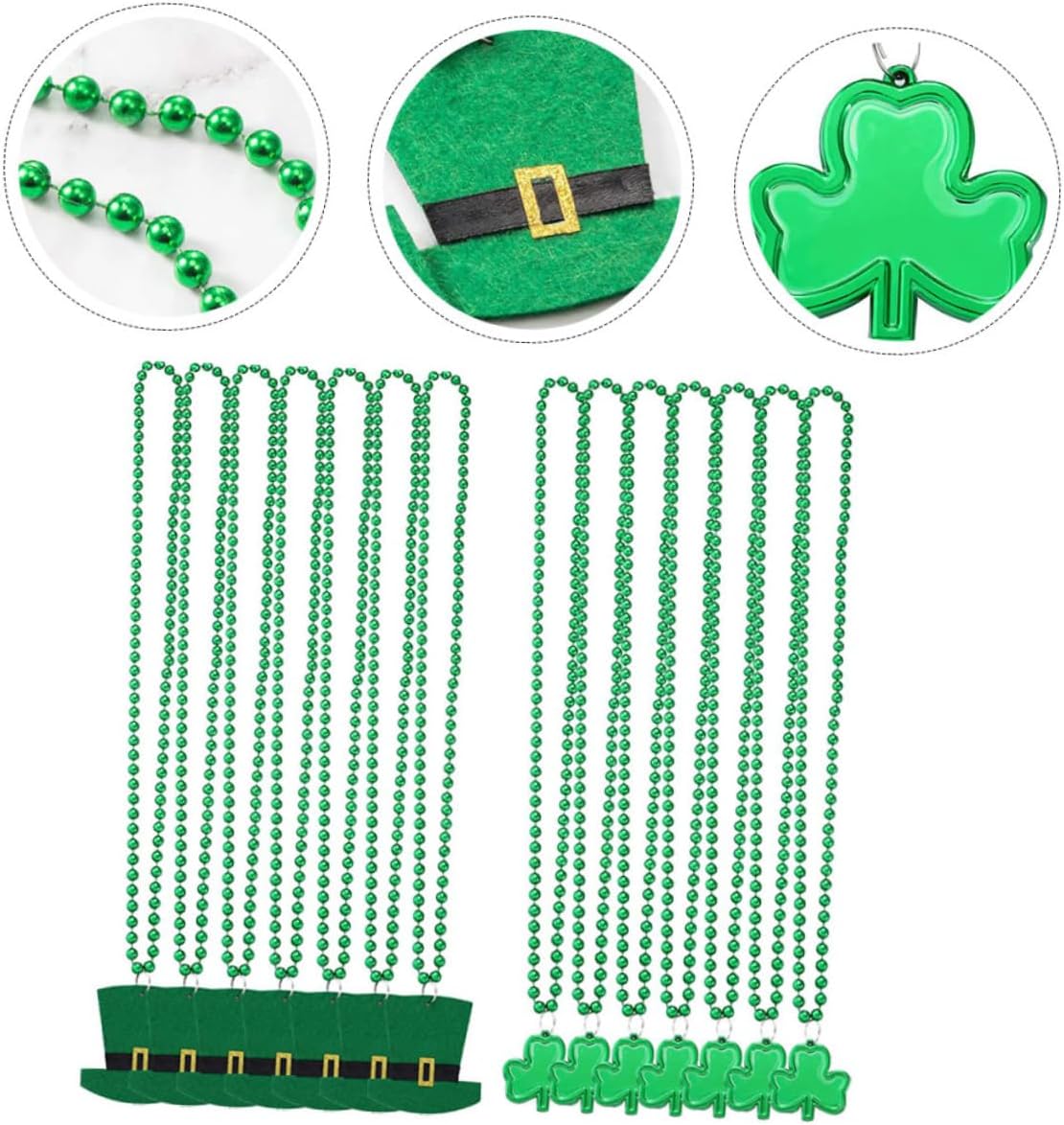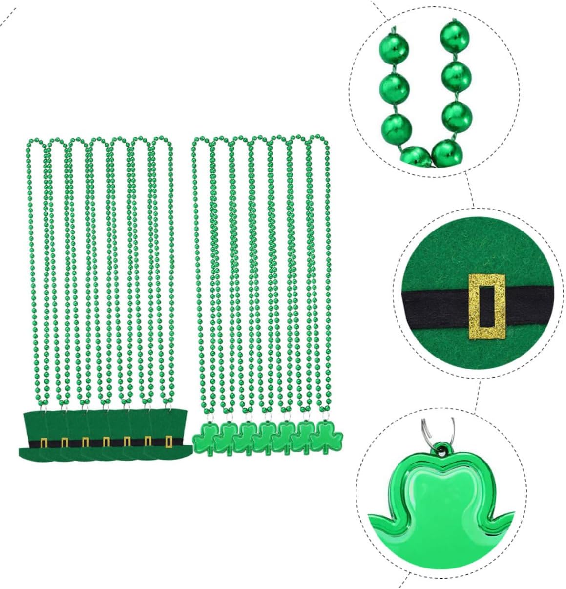 elenco dei pacchetti 14 x caratteristiche delle collane - materiale: catena da collo in plastica. - dimensioni: circa 46,00x6,50x0,60 cm/ 18,08x2,55x0,24 pollici collana di trifoglio. - colore: verde st. Collana per il giorno di San Patrizio. - Realizzato in materiale plastico resistente all'usura per lungo tempo e utilizza un colletto delicato. - La pregevole fattura, la consistenza eccellente, il colore brillante, sbiadiscono e si danneggiano facilmente, possono servirti bene e renderti più catena al collo del cappello a trifoglio. - semplice e la collana è facile da indossare e adatta alla maggior parte delle collane da festa. - Questa è una collana a tema squisita e bella, molto adatta come collana. San Patrizio ai tuoi amici st. Catena da collo per il giorno di San Patrizio. - La collana leggera e morbida può darti un ciondolo al collo più comodo. Informazioni sulla merce Catena da collo per cappello trifoglio Queste collane per la festa del giorno di San Patrizio sono realizzate con materiali e possono essere utilizzate a lungo. Patricks Day, ha un design leggero che ti permette di indossarlo comodamente e di acquistarlo in tutta tranquillità. Collana decorativa, queste collane possono essere utilizzate per spettacoli di danza, feste a tema e feste di ruolo.