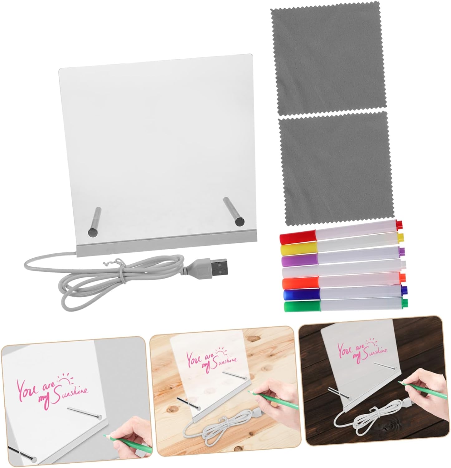 Divertimento educativo: questa tavola combina divertimento e apprendimento e aiuta a sviluppare la coordinazione occhio-mano e le capacità artistiche dei bambini. Lavagna trasparente, lavagna cancellabile con supporto Creatività senza fine: il design cancellabile della lavagna luminosa consente un utilizzo illimitato e ti incoraggia a scoprire il tuo potenziale artistico. Lavagna per appunti a LED con pennarelli, lavagna trasparente Adatta per il tracciamento: la lavagna in plastica trasparente è ottima per tracciare e aiuta i bambini a migliorare le loro capacità di disegno. È adatta come lavagna per appunti da scrivania e lavagna luminosa a LED. Portatile e leggera: questa lavagna facile da trasportare ti consente di divertirti a disegnare sempre e ovunque, adatta per viaggi o attività all'aperto, lavagna trasparente illuminata, tavolo da disegno luminoso per Leggero e portatile: questa lavagna è facile da trasportare ed è adatta per disegnare sempre e ovunque. È ideale per viaggiare o per uso esterno. Lavagna LED con supporto, lavagna luminosa