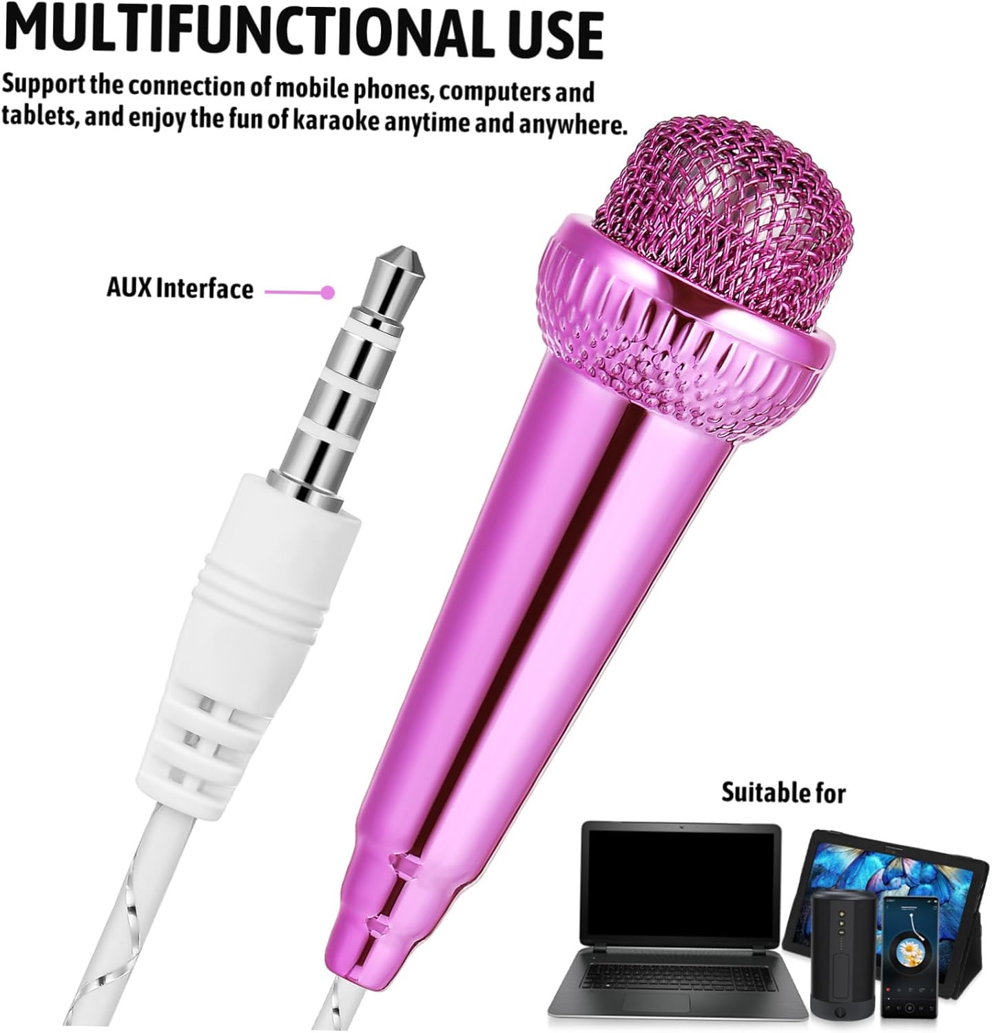 : Suono: il microfono musicale non emette alcun rumore durante l'uso, ma si prega di notare di non caricarlo o di utilizzarlo vicino a una ventola o al mini microfono del telefono cellulare. Microfono del telefono di registrazione: aspetto elegante: il mini microfono ha un colore brillante e un aspetto raffinato, che lo rendono un accessorio alla moda, mini microfono. Microfono del telefono per la registrazione: registrazione chiara: il mini microfono ha un microfono incorporato, che garantisce esperienze di canto e registrazione chiare, un piccolo microfono. Microfono per cantare al telefono: buona fattura: il microfono del mini telefono è realizzato in materiale plastico ed è stato galvanizzato, risultando in una superficie delicata, microfoni. : Leggero e portatile: il mini microfono ha un design piccolo e leggero, che lo rende facile da trasportare e utilizzare sempre e ovunque, registrando il microfono per il telefono.