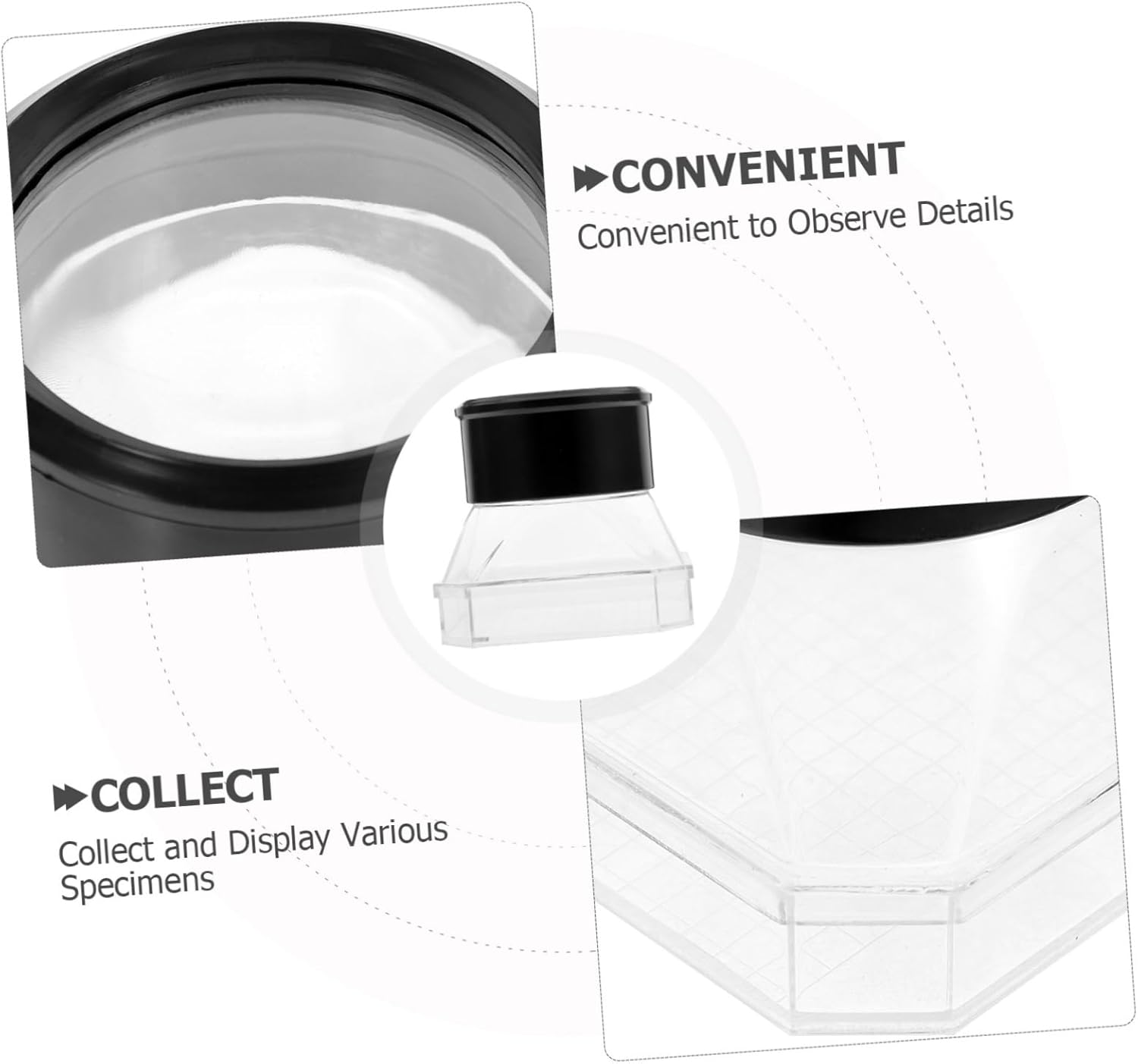 Visualizzatore di insetti: con il suo design trasparente, puoi osservare gli insetti in modo preciso e diretto con questa scatola di visualizzazione, contenitore ingranditore. Barattolo di lente d'ingrandimento per esperimenti scientifici: affidabile: queste scatole sono molto trasparenti, sicure e affidabili, leggere ma non facili da rompere, esplorando l'apprendimento del barattolo di lente d'ingrandimento. Vaso d'ingrandimento: ha un significato per l'apprendimento ed è un accessorio pratico per gli insegnanti per insegnare la conoscenza scientifica in classe, vaso d'ingrandimento per insetti. Contenitore per insetti: il design divertente per l'osservazione offre una visione completa degli esemplari, piccola custodia per insetti. Contenitore per lente d'ingrandimento per l'apprendimento: per ampliare le proprie conoscenze, stimolare l'interesse degli spettatori per l'esplorazione e l'apprendimento, contenitore per lente d'ingrandimento per insetti.