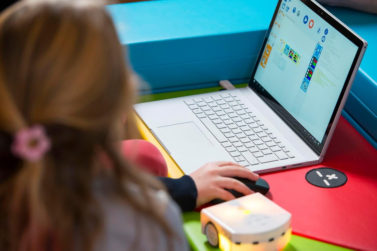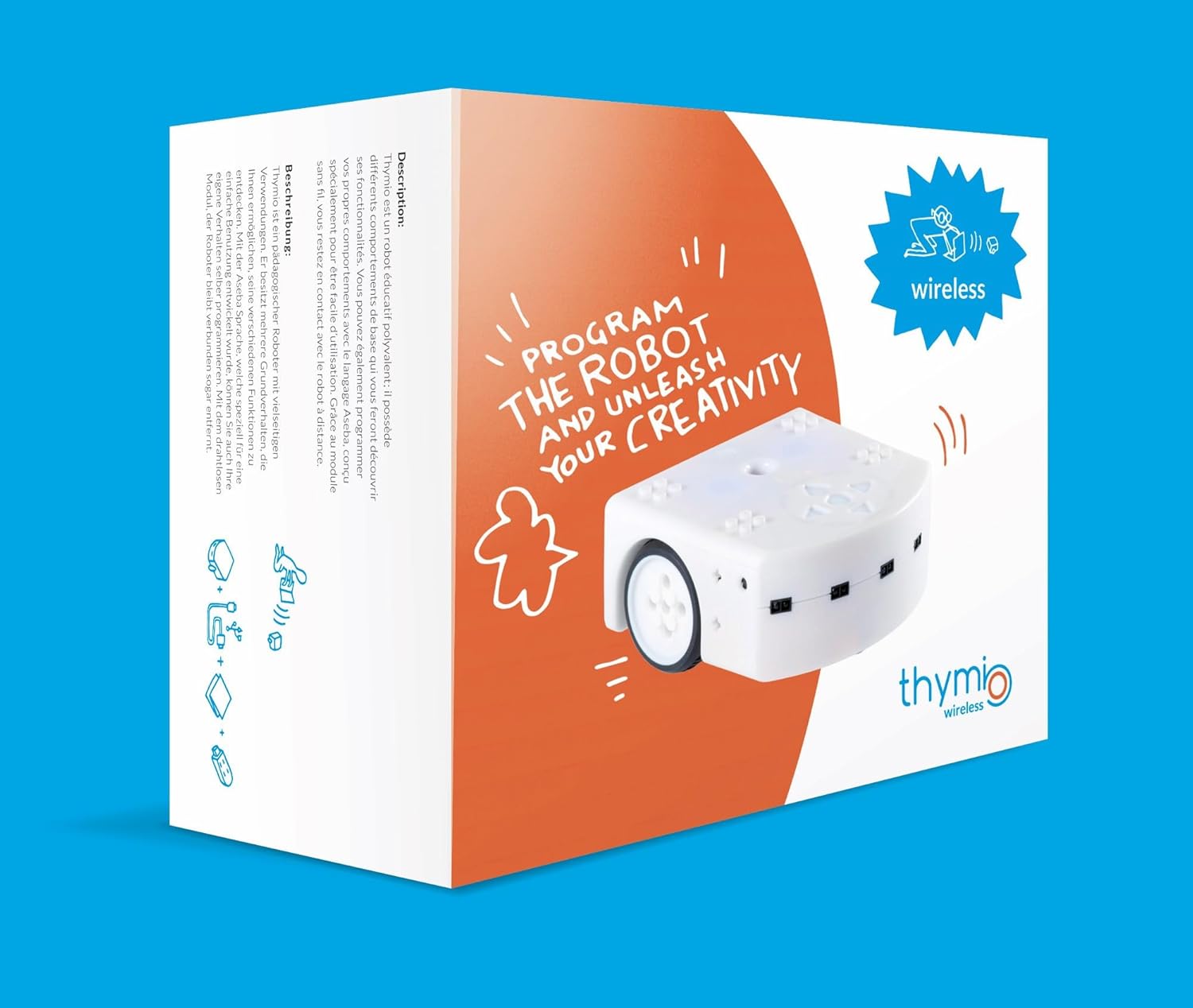Un robot educativo per scoprire la codifica informatica. Numerosi sensori (microfono, ricevitore infrarossi, temperatura, prossimità, accelerometro a 3 assi, sensori di terra per tracciamento linea), attuatori (motori, altoparlanti, led) e connettori (USB, memory card). Facile da prendere e maneggiare grazie alle dimensioni ridotte (110 x 110 x 50 mm) e al peso ridotto. Spazio appositamente progettato per posizionare una matita e utilizzare il robot per disegnare (in geometria per esempio).