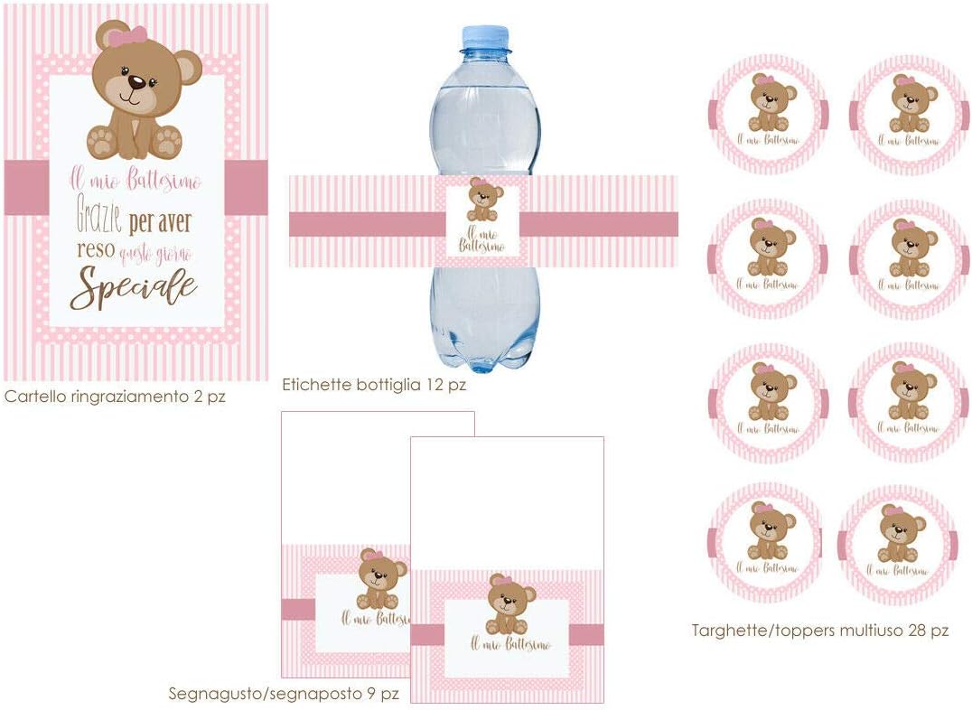 Coordinato tavola completo a tema Battesimo Culla Rosa