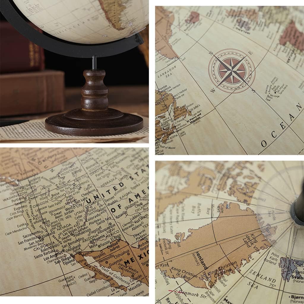 PERFETTAMENTE PRATICO: questo mappamondo con spilla indica e mostra le tue esperienze e destinazioni preferite, oppure ispira ed esplora nuovi luoghi e destinazioni. Se viaggiare per il mondo è la tua passione, questo è il regalo che fa per te. 【Globo dettagliato】Il globo terrestre ti offre una mappa del mondo completa per vedere tutto, oceani e paesi in modo chiaro. Paesi, città, specchi d'acqua e linee di latitudine e longitudine sono etichettati. 【Stabile e durevole】Il globo di facile lettura con supporto è realizzato in plastica resistente e liscia che può essere facilmente ruotata con le dita. Questo globo ha una base in legno, che è stabile e sicura per l'uso da parte dei bambini. 【Diametro della sfera 9,05"】Con questo design, puoi vedere ogni paese, montagna, fiume, meraviglia naturale, deserto, oceano che vuoi osservare più chiaramente, dandoti un'esperienza visiva più intuitiva. Non importa dove ti trovi, puoi facilmente capovolgere il globo per trovare ciò che vuoi mostrare e puoi facilmente portare qualsiasi area nei tuoi occhi. 【decorazione elegante】Il globo funzionale può essere utilizzato come una bella decorazione quando esposto su una scrivania, una cassettiera, un tavolo o uno scaffale. Puoi ruotare il globo lungo l'asse terrestre per trovare posizioni geografiche, un ottimo strumento di apprendimento per casa, ufficio, scuola, soggiorno e camera da letto, che ti consente di navigare nel mondo a portata di mano!