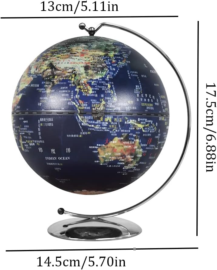 PERFETTAMENTE PRATICO: questo mappamondo con spilla indica e mostra le tue esperienze e destinazioni preferite, oppure ispira ed esplora nuovi luoghi e destinazioni. Se viaggiare per il mondo è la tua passione, questo è il regalo che fa per te. 【Globo luminoso 2 in 1】Questo globo luminoso con supporto non solo può fornirti una mappa del mondo completa, ma anche migliorare le tue capacità geografiche. Puoi anche accendere la luce per trasformarti in un bellissimo globo luminoso che può essere utilizzato come lampada da scrivania o studio notturno. 【Globo geografico dettagliato】Il globo terrestre ti offre una mappa del mondo completa per vedere tutto, oceani e paesi in modo chiaro. Il globo terrestre mostra chiaramente l'oceano blu vibrante, i confini regionali colorati, i paesi, le città, i corsi d'acqua e le linee di latitudine e longitudine. 【Stabile e durevole】Facile da leggere Il globo luminoso con supporto è realizzato in plastica resistente e liscia, che può essere facilmente ruotato con le dita. La superficie opaca fine e trasparente protegge gli occhi dall'affaticamento e i bambini possono toccare qualsiasi posto sulla terra che li interessi. Genitori, non preoccupatevi! 【Decorazioni da scrivania】Semplici, eleganti e raffinati, perfetti per la decorazione di casa e ufficio, come un look moderno ed elegante, si abbina perfettamente all'arredamento della tua casa esistente