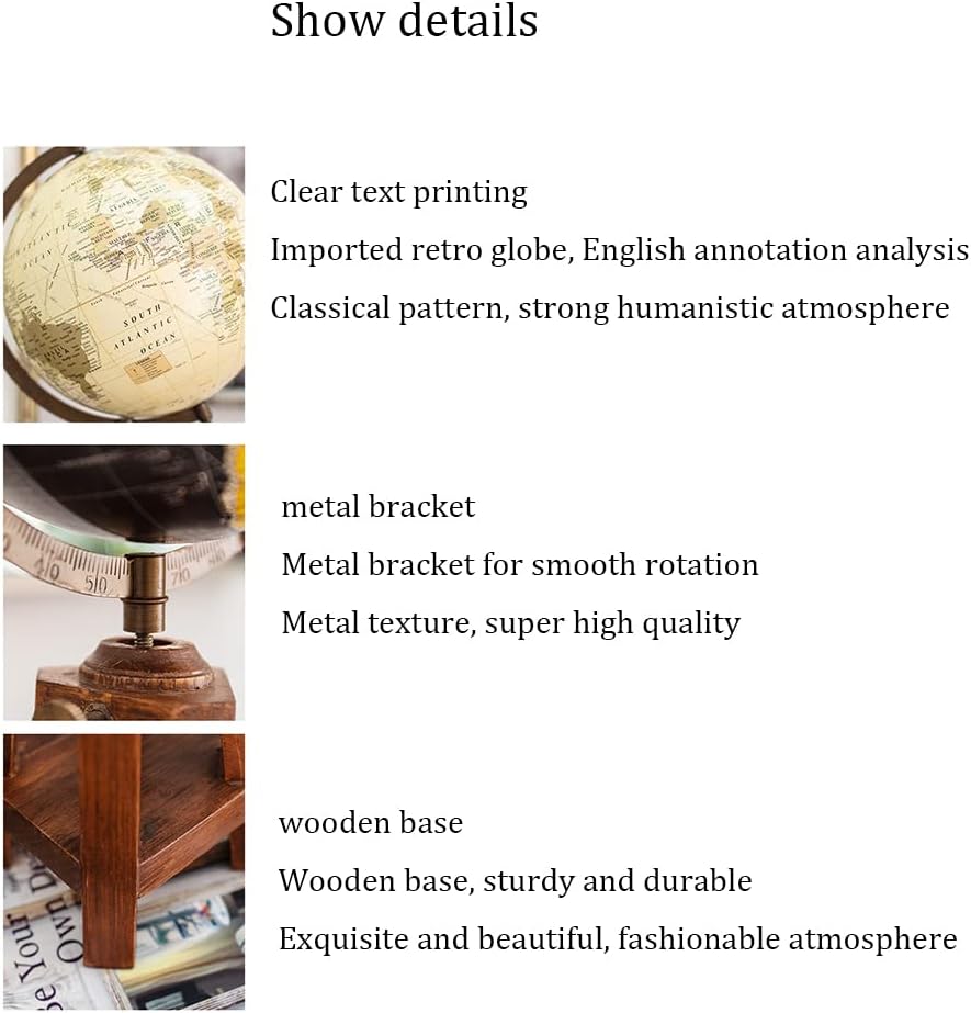 PERFETTAMENTE PRATICO: questo mappamondo con spilla indica e mostra le tue esperienze e destinazioni preferite, oppure ispira ed esplora nuovi luoghi e destinazioni. Se viaggiare per il mondo è la tua passione, questo è il regalo che fa per te. 【Mappamondo】Questo splendido mappamondo aggiunge un colore meraviglioso alla decorazione della tua casa, della tua classe e della tua sala giochi. Aiutati a farti un'idea del mondo, dei continenti, dei paesi e delle città con un mappamondo ben progettato 【Staffa in metallo】Rotazione fluida, flessibile e fluida senza inceppamenti, che consente di osservare chiaramente da qualsiasi angolazione senza vicoli ciechi. Fissato con viti, non facile da staccare, liscio e non taglia le mani, robusto e durevole [Posizionamento stabile] Base in legno triangolare, posizionamento stabile, squisito ed elegante, alla moda e durevole 【Eleganti decorazioni da scrivania】Semplici, eleganti e raffinate, perfette per l'arredamento di casa e ufficio, con un look moderno ed elegante, si abbinano perfettamente all'arredamento della tua casa esistente
