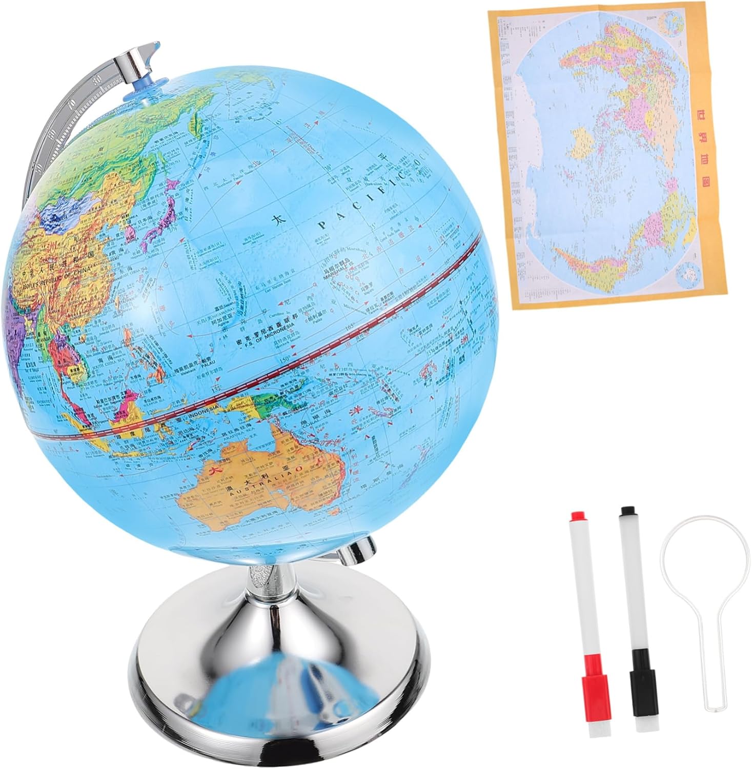 PERFETTAMENTE PRATICO: questo mappamondo con spilla indica e mostra le tue esperienze e destinazioni preferite, oppure ispira ed esplora nuovi luoghi e destinazioni. Se viaggiare per il mondo è la tua passione, questo è il regalo che fa per te. [Interessante] Questo globo consente alle persone di comprendere intuitivamente questa semplice ma complessa Terra, ed è anche molto adatto ai genitori come regalo per i loro ren. Consente ai ren di contrassegnare le città in cui sono stati e di assistere alla loro crescita, coltivando al contempo l'interesse nell'esplorazione del mondo. 【Alta qualità】La sfera è realizzata in (abbreviato PS). È un materiale termoplastico incolore e trasparente con una temperatura di transizione vetrosa superiore a 100°C, quindi è resistente all'acqua e all'umidità, leggero, con elevata durezza e altre caratteristiche. [Base in metallo] La base è realizzata in materiale metallico, che è stabile e non cade facilmente, in modo da avere una lunga durata e un'eccellente garanzia di qualità. Posizionata in modo sicuro, è un'aggiunta elegante alla casa o all'ufficio 【Design rotante】Puoi vedere ogni paese, montagna, fiume, meraviglia naturale, deserto, oceano che desideri osservare più chiaramente, offrendoti un'esperienza visiva più intuitiva. Il globo può essere facilmente ruotato da sinistra a destra e da destra a sinistra per una facile visualizzazione.