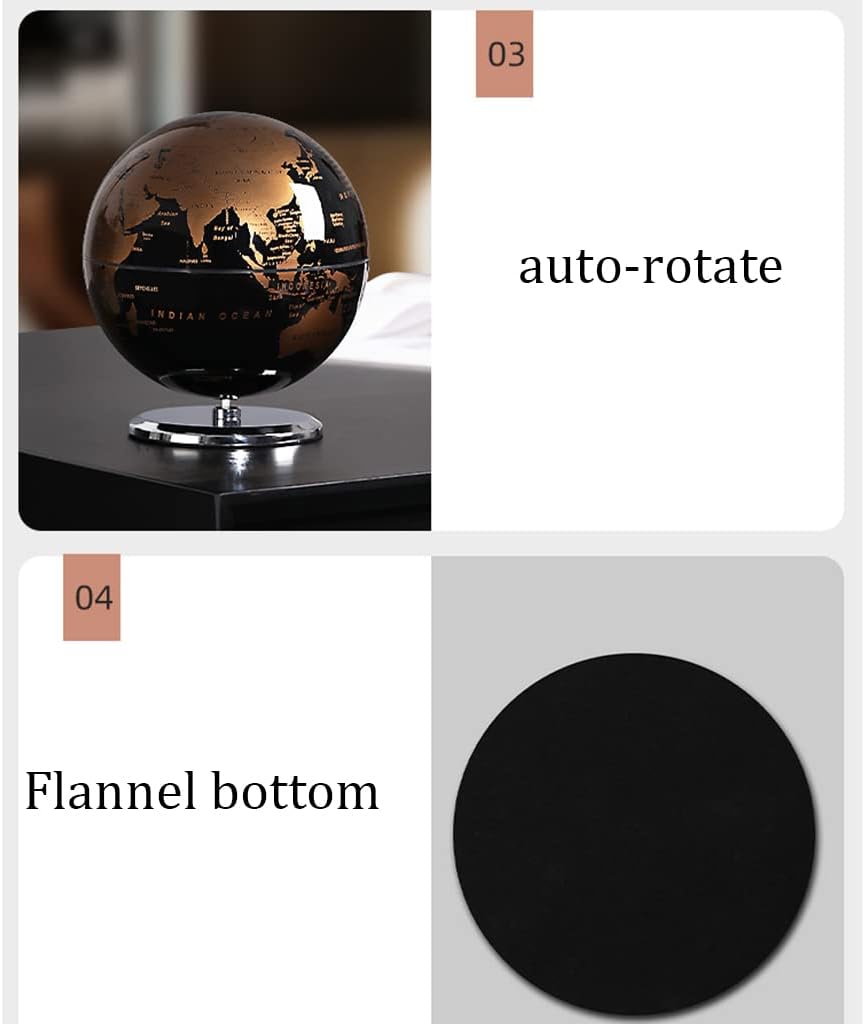 PERFETTAMENTE PRATICO: questo mappamondo con spilla indica e mostra le tue esperienze e destinazioni preferite, oppure ispira ed esplora nuovi luoghi e destinazioni. Se viaggiare per il mondo è la tua passione, questo è il regalo che fa per te. 【Rotazione automatica a 360°】Dopo aver ruotato la molla principale, il globo ruota lentamente e la musica viene riprodotta automaticamente allo stesso tempo. Puoi facilmente capovolgere il globo per trovare ciò che vuoi mostrare e puoi facilmente portare qualsiasi area nei tuoi occhi. 【BASE DUREVOLE E STABILE】Questo globo terrestre per bambini e adulti ha una base in metallo resistente, così puoi tenerlo e ruotarlo facilmente. Parte inferiore in flanella per stabilità e protezione per la tua casa 【ALTA QUALITÀ】Con una stampa di alta qualità, fine e chiara, offre un'esperienza molto rilassante e piacevole durante la lettura di intervalli geografici. Mostra paesi, confini politici, capitali, città principali, ecc. che puoi usare ogni giorno e consultare in qualsiasi momento. 【Multifunzionale】Non solo un globo, ma anche un carillon o può anche essere utilizzato come luce notturna, perfetto per la decorazione di casa e ufficio, come un look moderno ed elegante, si abbina perfettamente all'arredamento della tua casa esistente