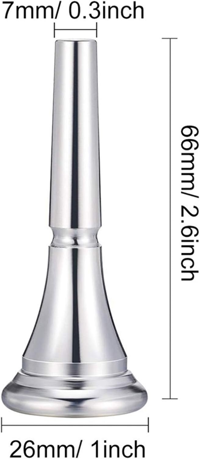 Lunghezza totale: 2,6 pollici; Diametro gambo: 0,25 pollici; Diametro della tazza: 1 pollice. Il trattamento placcato con di produzione professionale per l'antiruggine, ha una lunga durata da utilizzare. Materiale: il bocchino standard per francese è realizzato in lega di rame con placcatura in , fattura, resistente, riutilizzabile e non arrugginisce Adatto a tutti i giocatori principianti. Facile suonabilità e universale per di diverse marche