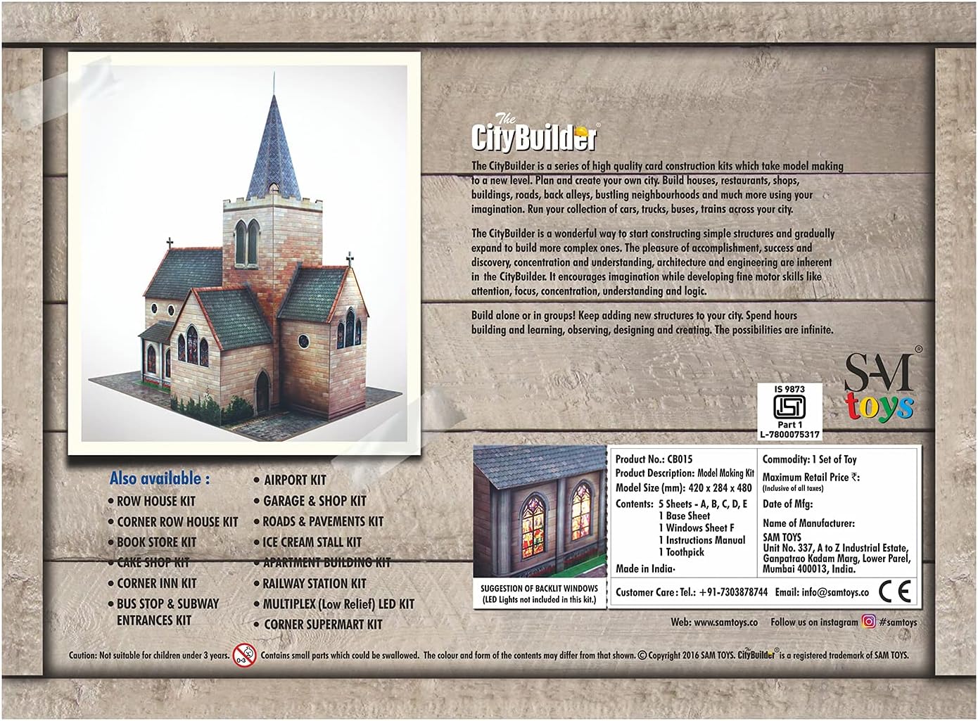 Costruisci una chiesa con questo kit. Questo è un kit di modelli per biglietti fai-da-te che richiede colla, un coltello, un righello in acciaio e altri oggetti opzionali per tagliare, costruire e completare. Numero articolo: CB015 Dimensioni modello finito (mm): 284 (L) x 420 (P) x 480 (A) Scala: compatibile con scartamento O (perfetto per l'uso con modellini ferroviari con scartamento O). Materiale: fogli di cartone prestampati e prefustellati. Questo kit comprende: 5 fogli: A, B, C, D, E 1 foglio base, 1 foglio finestra F, 1 manuale di istruzioni fotografico, 1 stuzzicadenti, il tutto confezionato in una scatola di cartone per arrivarvi in perfette condizioni. CityBuilder è una serie di kit di costruzione di mappe unici, realistici e di alta qualità che portano la costruzione di modelli a un nuovo livello. Creativo, fantasioso, educativo e avvincente, The CityBuilder ti ispira a creare incredibili strutture cittadine da fogli di mappe prestampati e tagliati con precisione. Ogni kit contiene tutti i componenti dettagliati e un manuale di istruzioni fotografico che descrive la procedura passo passo per aiutare a costruire questi modelli. Pianifica e crea la tua città. Costruisci case, negozi, ristoranti, edifici, strade, vicoli, quartieri animati e molto altro ancora usando la tua immaginazione. Aggiungi vetri alle finestre, tende, fioriere, ecc. per renderli realistici. Gestisci la tua collezione di automobili, camion, autobus e treni in tutta la tua città. CityBuilder è un modo meraviglioso per iniziare a costruire strutture semplici ed espandersi gradualmente per costruire strutture più complesse.