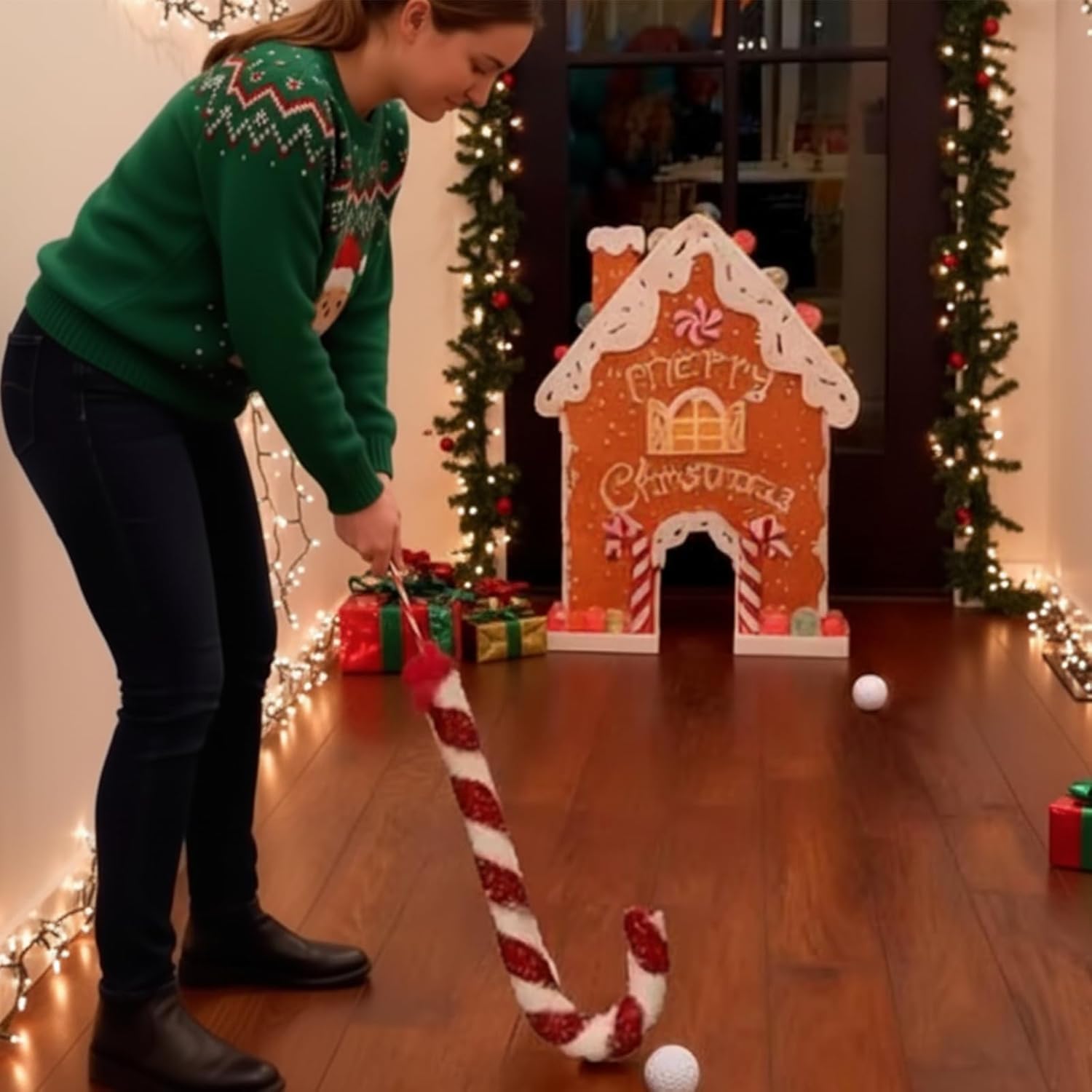 Trasforma il tuo soggiorno in un festoso campo da minigolf con il set da golf di pan di zenzero! Completo di mazze di zucchero filato, un bersaglio a forma di "casa" di pan di zenzero e morbide palline da golf, è perfetto for bambini e adulti che vogliono condividere insieme gioiosi momenti natalizi. Si monta in pochi secondi, senza bisogno di attrezzi o di sporcare! Include un robusto bersaglio in legno, una mazza da golf a forma di bastoncino di zucchero e sei palline morbide for giocare in sicurezza al chiuso. Perfetto for serate in famiglia, partite scolastiche o riunioni della Vigilia di Natale piene di risate ed emozioni. Realizzato in legno liscio e resistente, questo set da golf di pan di zenzero è sicuro for tutte le età e progettato for un uso prolungato. Divertitevi anno dopo anno con questo gioco divertente e senza sporcare, sia al chiuso che all'aperto, che porterà calore e gioia alle vostre feste. Compatto e portatile, questo gioco da golf natalizio si adatta a qualsiasi spazio: gioca a casa, in ufficio o a scuola. Che si tratti di una gara di golf in una festa o di un tranquillo pomeriggio di festa, porta creatività, risate e allegria a ogni swing. Questo set da golf a forma di casetta di pan di zenzero è un divertente regalo di Natale e un ottimo modo for rompere il ghiaccio durante feste e riunioni di famiglia.