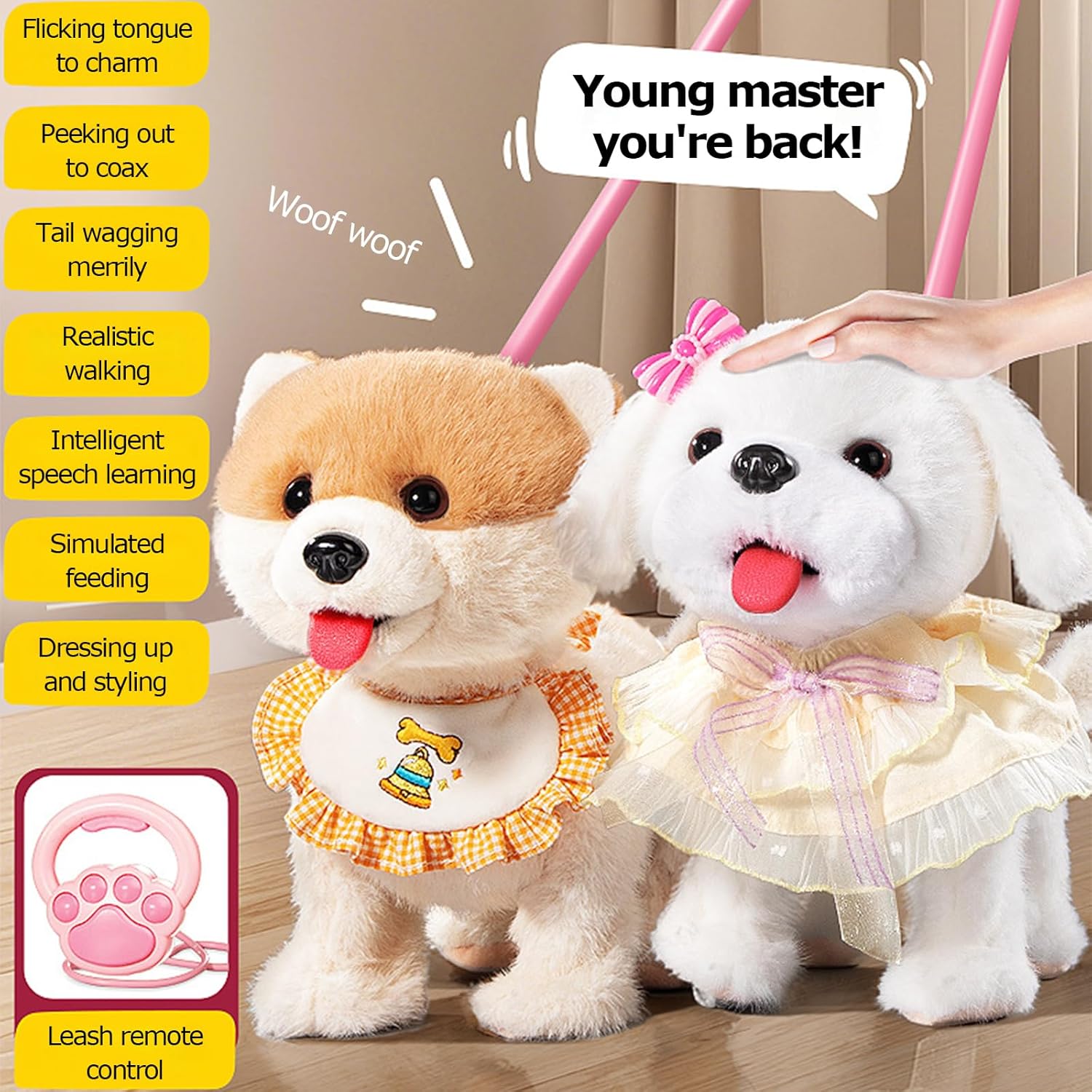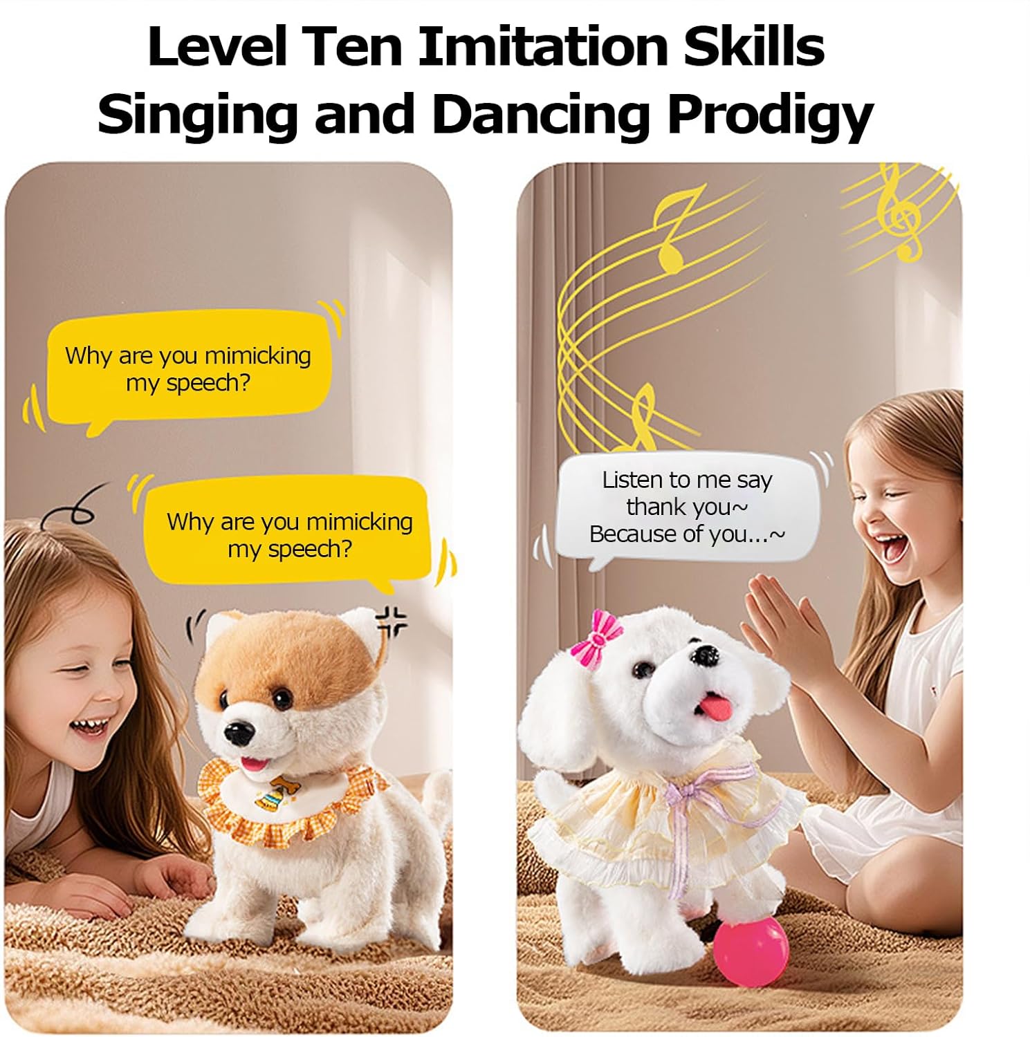 【Esperienza interattiva bionica】 Il cane elettronico è dotato di ripetizione vocale e capacità di apprendimento dei comandi, simulando il comportamento canino autentico. Si impegna in interazioni a piedi attraverso la locomozione quadrupede, integrata da una tecnologia sensibile al tocco che suscita risposte realistiche ad azioni come la toelettatura e l'alimentazione. 【Performance dai molteplici talenti】 Supporta esibizioni di talenti tra cui balli di strada e canti di filastrocche, con brani divertenti incorporati come "Little Frog" e "Bath Time Song". In grado di eseguire movimenti impegnativi come verticali e flessioni, favorendo la percezione artistica dei bambini. [Doppia alimentazione] La scelta flessibile tra la modalità di ricarica o quella della batteria garantisce una compagnia ininterrotta. Presenta una lingua realistica e una coda scodinzolante, completata da accessori di vestizione per migliorare il divertimento del gioco di ruolo e il valore educativo. 【Compagno emotivo】 Dotato di 5 suoni emotivi che abbaiano, che trasmettono sentimenti attraverso azioni come massaggiarsi la testa, coccolarsi e leccarsi affettuosamente le mani. Supporta l'interazione vocale e l'imitazione degli abbracci per aiutare i bambini a sviluppare un senso di sicurezza e consapevolezza emotiva. 【Set regalo deluxe】 Realizzato in fibra di poliestere al 100% per morbidezza e sicurezza. Include un set completo di accessori con ciotola per il cibo, guinzaglio e biberon, che consente esperienze di toelettatura, alimentazione e cura per coltivare la responsabilità e la compassione.