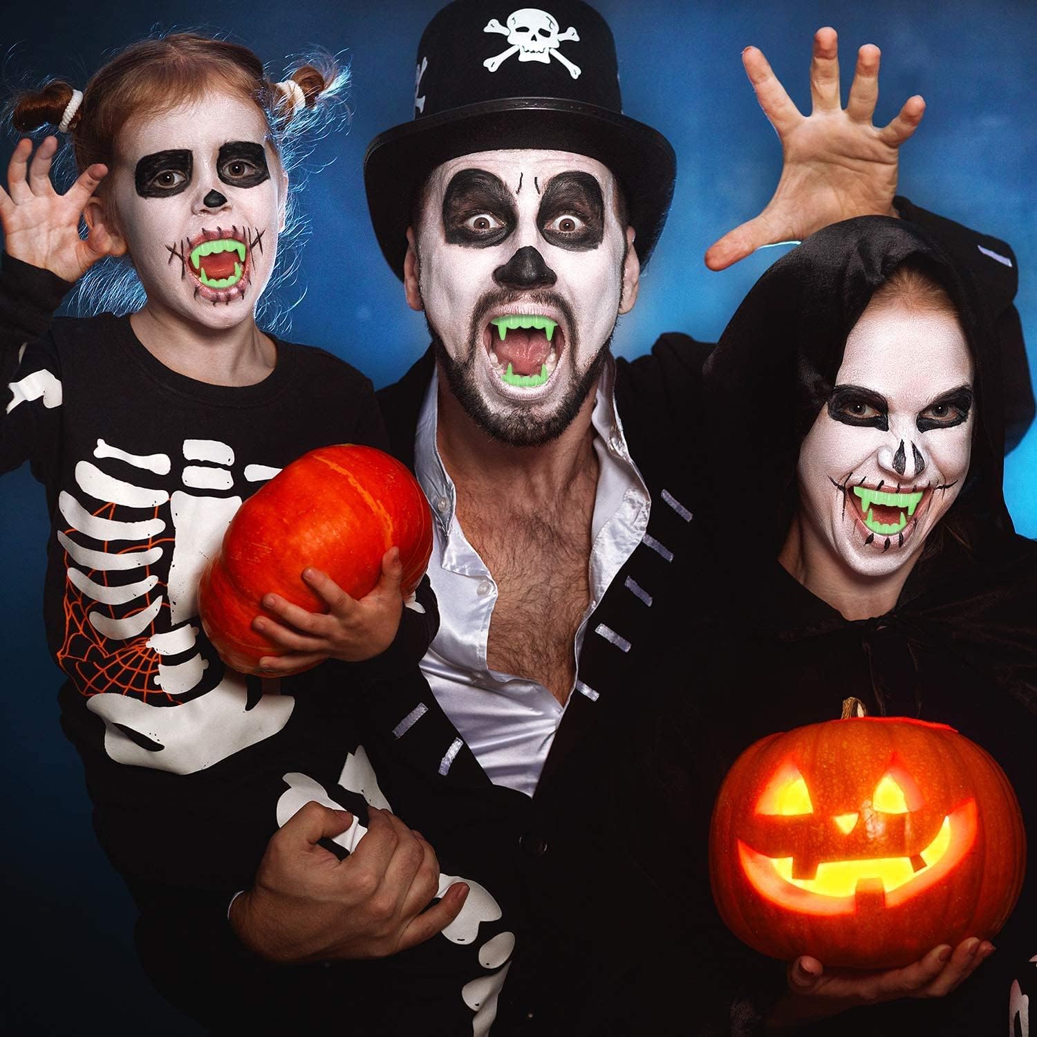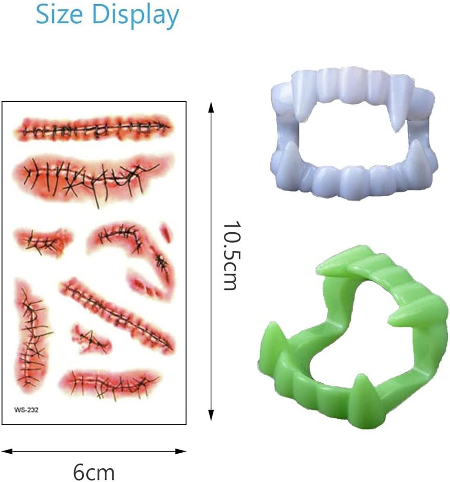 Set per il trucco di Halloween: 2 pezzi di denti da vampiro per bambini + 30 fogli di tatuaggi di Halloween che soddisfano bene le vostre esigenze e sono un buon regalo per i vostri amici. Materiale sicuro: denti da vampiro. Realizzato in resina di alta qualità, durevole e rimovibile per un lungo periodo di tempo, comodo da indossare e non danneggia la pelle. Ampio utilizzo: un buon accessorio per feste può far risaltare bene la tua personalità ed è adatto per feste di Halloween, cosplay, accessori di scena fotografici, feste in maschera, giocattoli trucchi, ecc. Facile da usare: pulire accuratamente i denti con acqua e sapone prima dell'uso e poi inserirli direttamente nei denti. Servizio clienti: se avete domande sul prodotto, vi preghiamo di contattarci via e-mail. Vi risponderemo entro 24 ore.