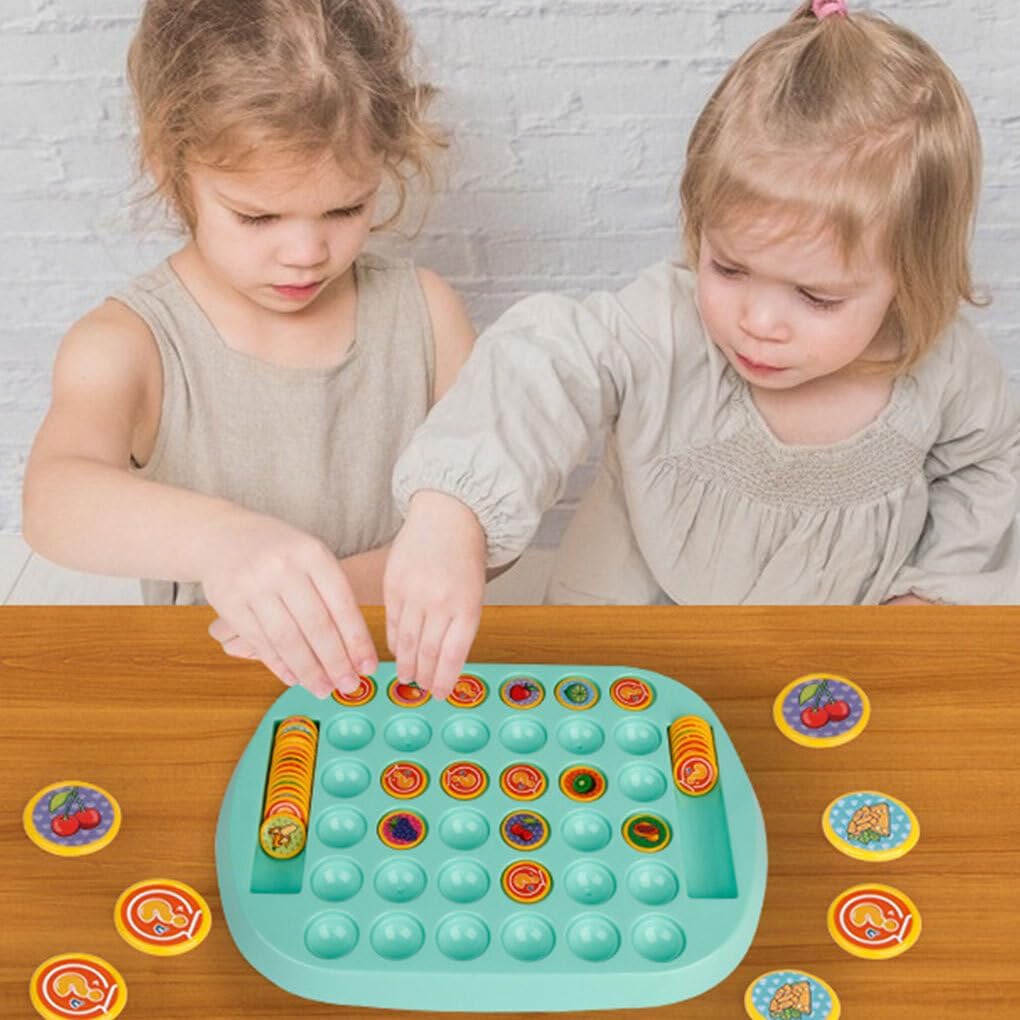 Gioco di memoria interattivo: metti alla prova le capacità di memoria di tutti lanciando modelli di animali e frutta sulla scacchiera, promuovendo la comunicazione e la cooperazione tra genitori e figli o amici Colorato: i motivi di animali e frutti dai colori vivaci e carini attirano l'attenzione dei bambini, aumentano il loro interesse e stimolano la loro immaginazione, migliorando le capacità cognitive Facile da giocare: regole semplici e di facile comprensione rendono questo gioco di scacchi ribaltabile con memoria per due giocatori adatto a giocatori di tutte le età Divertimento in famiglia: migliora l'interazione con questo gioco competitivo multiplayer, per serate di gioco in famiglia o incontri con gli amici Miglioramento della memoria: esercita la memoria e le capacità di attenzione trovando stili corrispondenti sul tabellone di gioco a fogli mobili, un'esperienza di gioco da tavolo divertente ed educativa