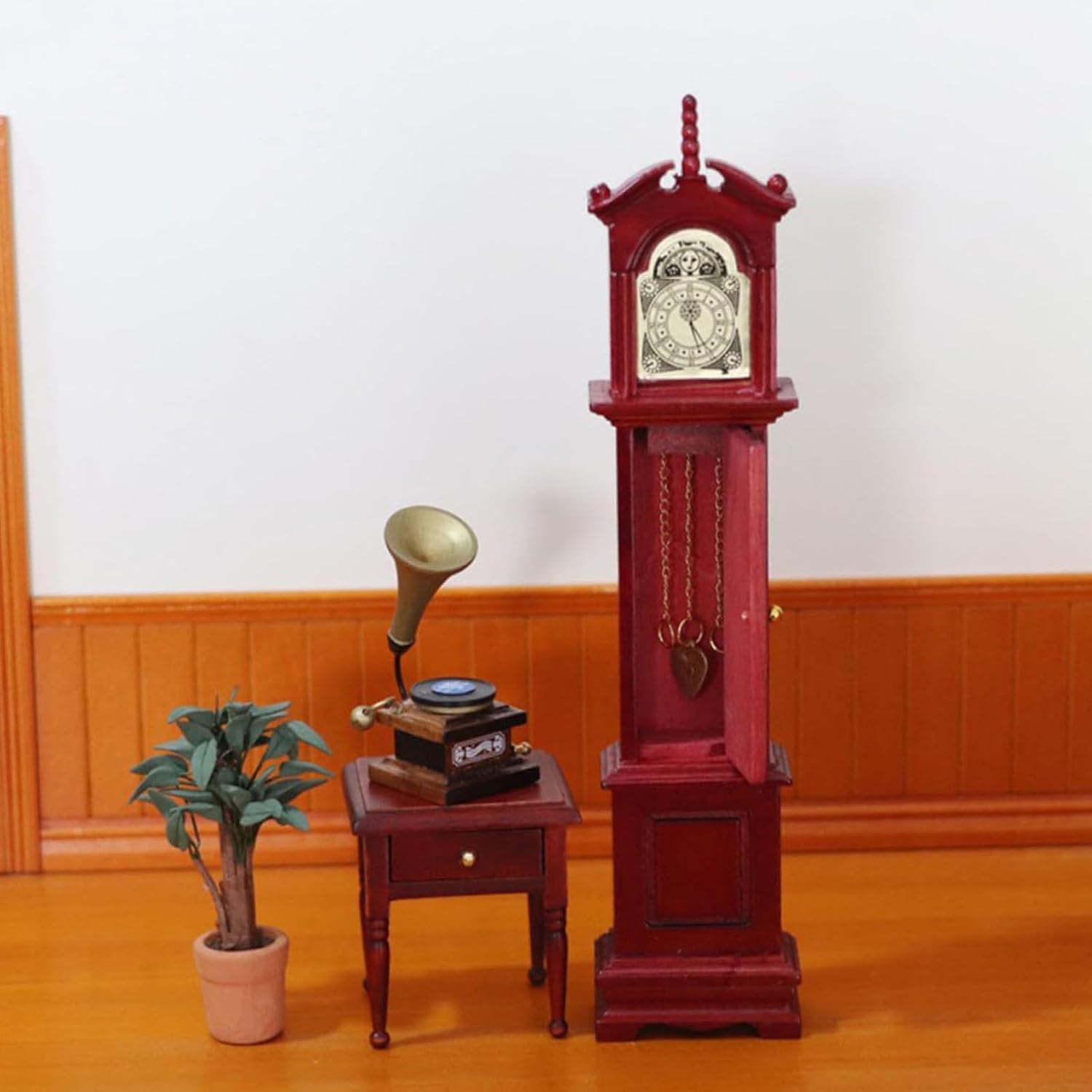 Materiali in legno, questo fonografo visivamente accattivante Modello di orologio a pendolo elaborato e vintage, compatto, ad alta riduzione, i materiali accuratamente selezionati non sono facili da deformare. Eccellente aggiunta alle tue case delle bambole Un modello giocattolo, non un vero orologio a pendolo, un regalo molto divertente per coloro che stessi e i decoratori delle case delle bambole realizzano un modello dall'aspetto eccellente molto vicino alla realtà. Ottimi oggetti di scena per la fotografia