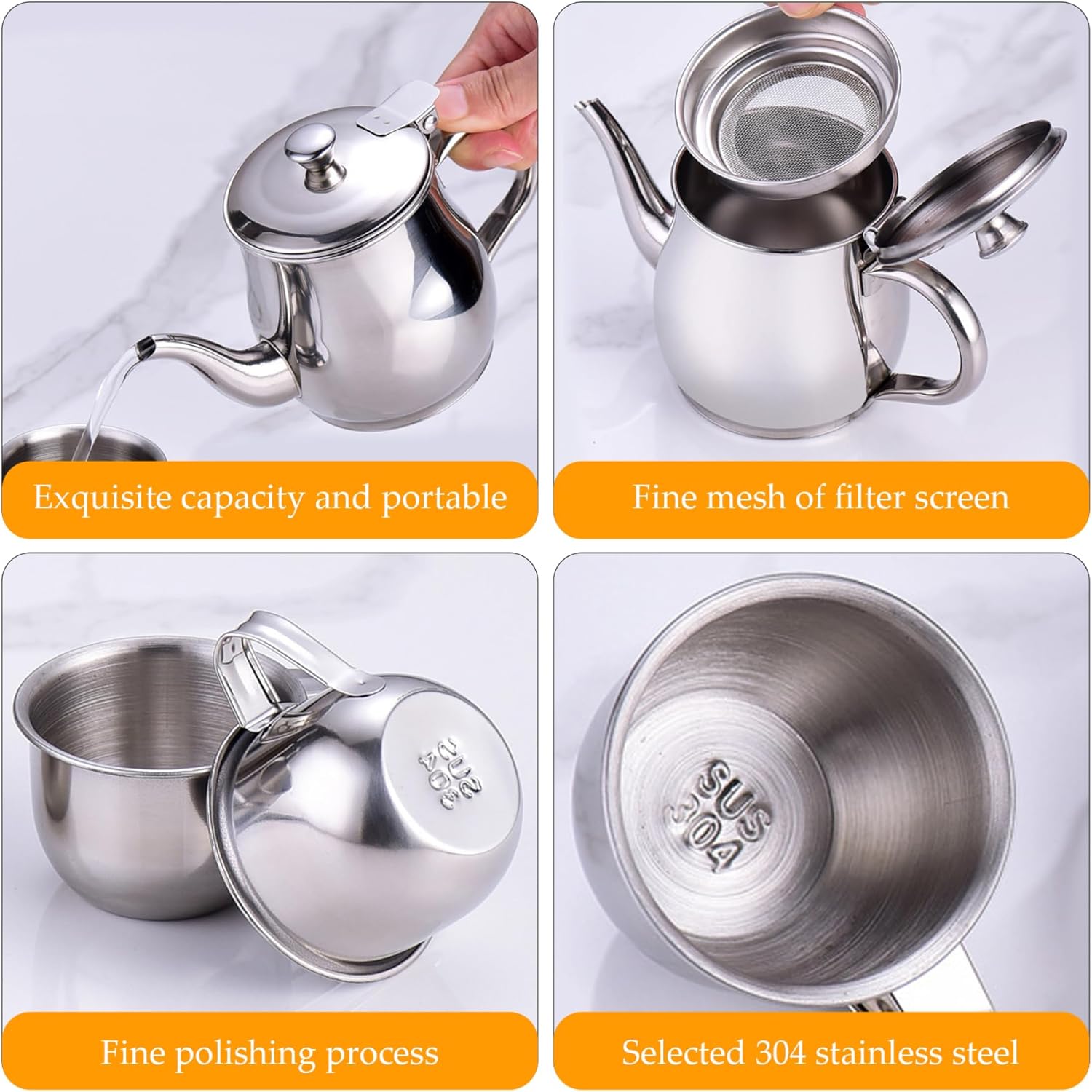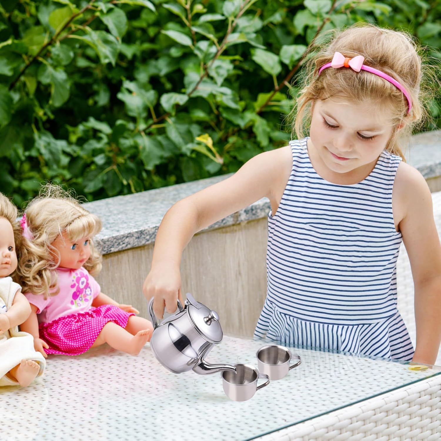 Design adatto ai bambini: questo set da tè per bambini è dotato di una teiera sicura e portatile in acciaio inossidabile da 330 ml con un lungo beccuccio e uno schermo filtrante integrato, perfettamente dimensionato per le mani piccole, insieme a due tazze da 70 ml che incoraggiano il gioco fantasioso e l'interazione sociale nei bambini. Scelta di regali perfetti: combinando funzionalità e divertimento, questo set di teiere e tazze in metallo è pronto per deliziare i bambini in occasione di compleanni, vacanze o occasioni speciali, rendendolo un set da tè per bambini pratico e memorabile. Compatto e portatile: leggero e facile da trasportare, l'intero set da tè è realizzato affinché i bambini possano godersi i tea party ovunque, sia all'interno che all'esterno, promuovendo il divertimento in movimento e una facile conservazione. Promuove il gioco di finzione: progettato come un giocattolo ideale per i giochi di ruolo, questo set da tè favorisce la creatività, le abilità sociali e lo sviluppo motorio, rendendolo il regalo perfetto per i bambini che amano i tea party fantasiosi. Costruzione in acciaio inossidabile: realizzata in acciaio inossidabile, la teiera è robusta, resistente alla ruggine e facile da pulire, garantendo un uso a lungo termine per i bambini attivi mantenendo sicurezza e igiene.