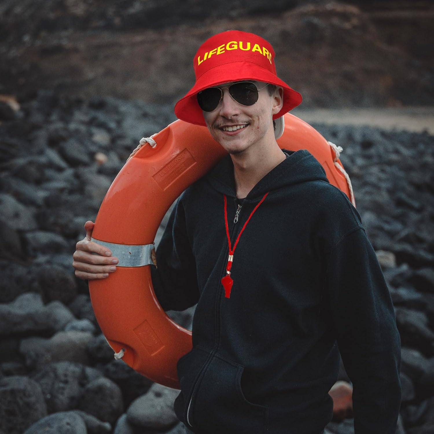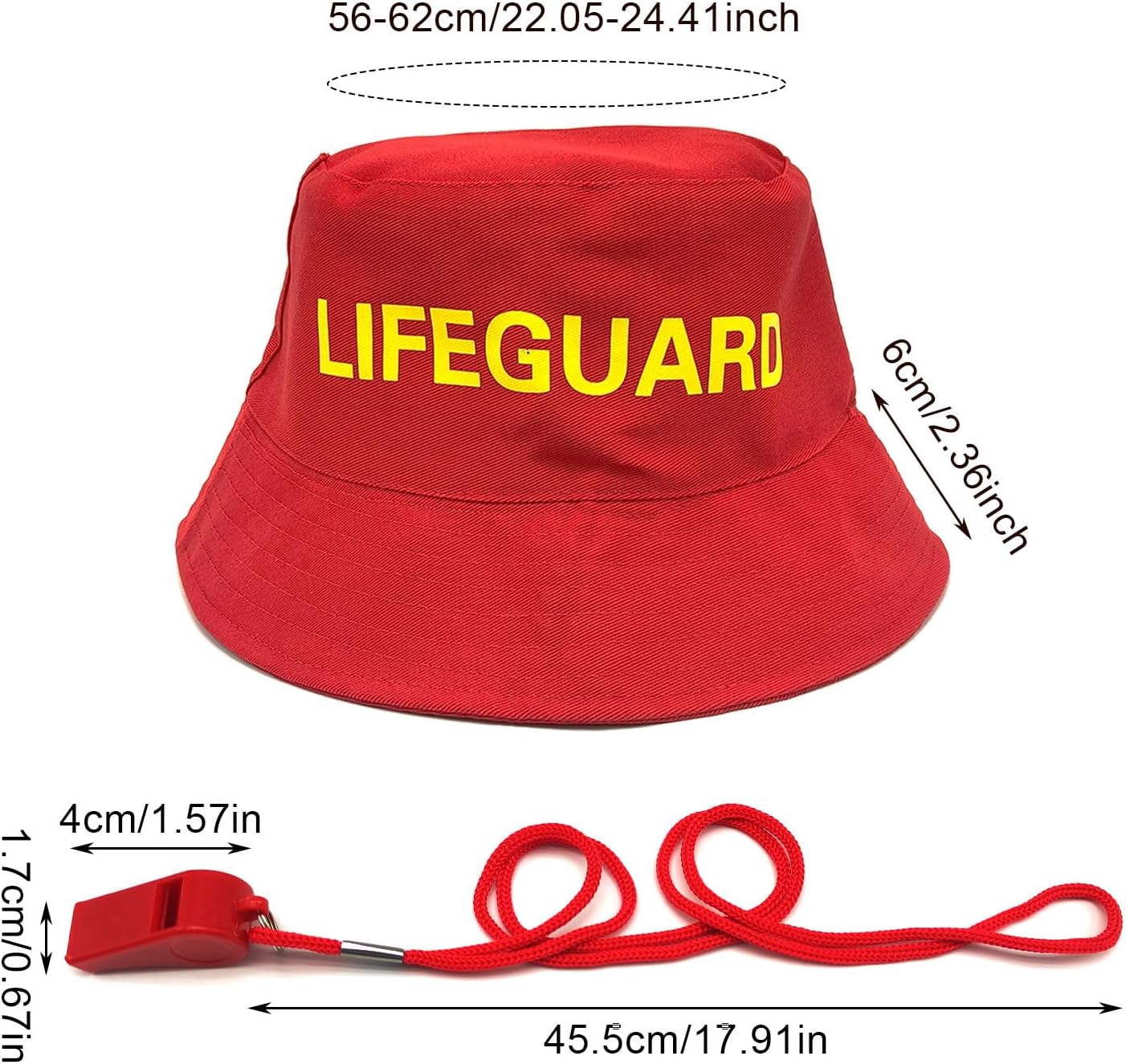 Accessorio da bagnino, cappello da bagnino, fischietto rosso, fischietto in plastica, costume per feste in spiaggia in piscina Specifiche tecniche: Materiale: tessuto, plastica. Colore: Rosso Taglia: taglia unica adatta per la forma e le dimensioni della maggior parte degli adulti. Il cappello con visiera misura circa 56-62 cm di perimetro. Contenuto della confezione: 1 cappello da bagnino. 1 fischietto rosso.