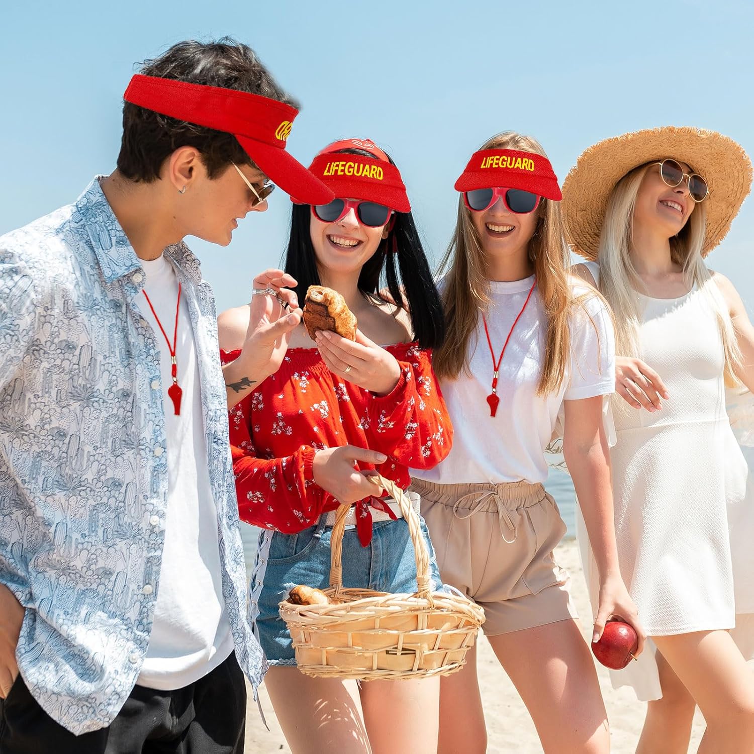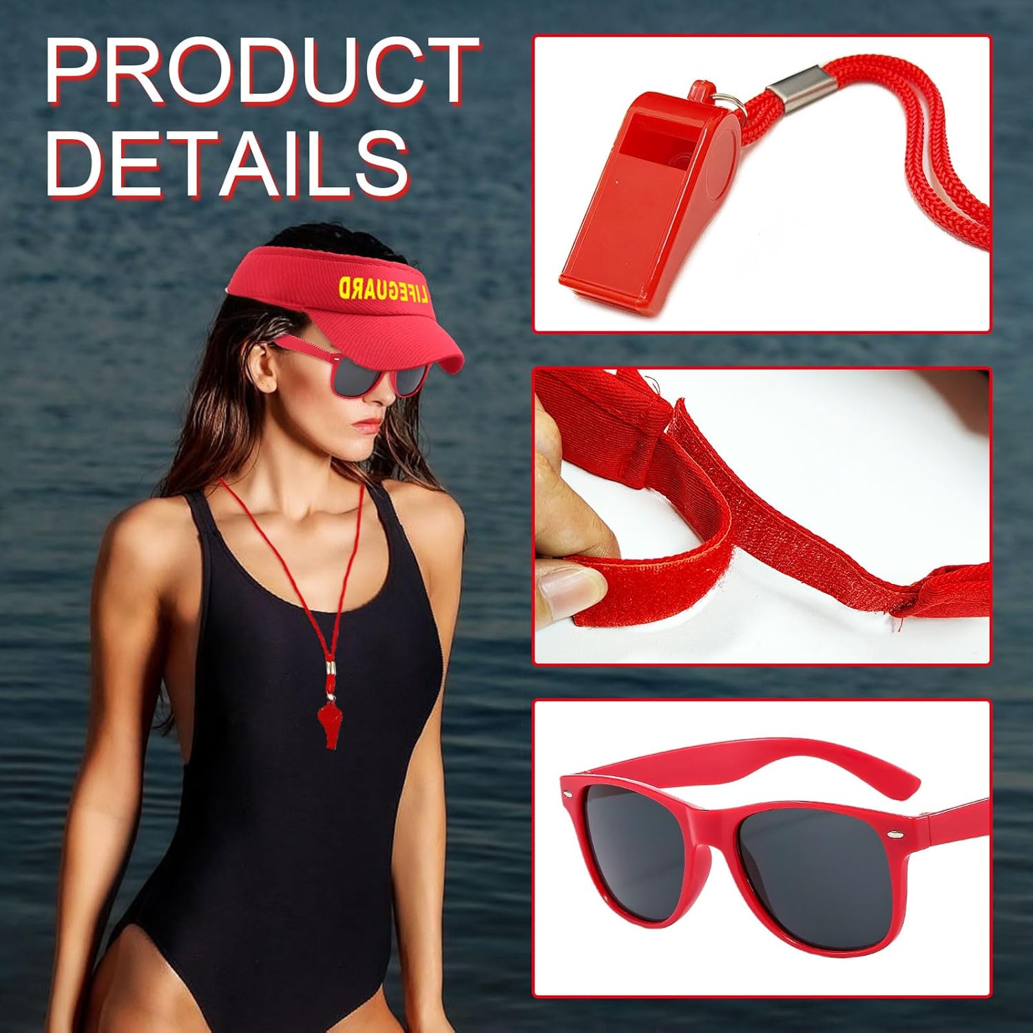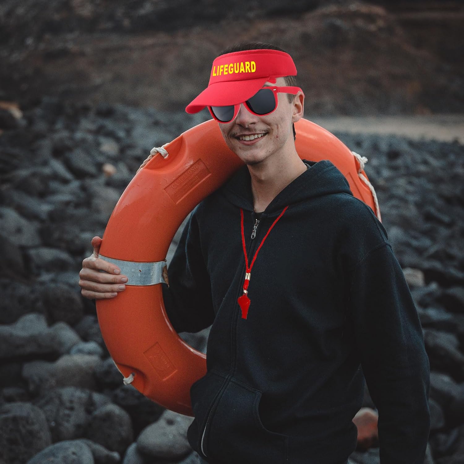 Descrizione prodotto Accessorio da bagnino, cappello da bagnino, fischietto rosso, fischietto in plastica, costume per feste in spiaggia in piscina Specifiche tecniche: Materiale: tessuto, plastica. Colore: Rosso Taglia: taglia unica adatta per la forma e le dimensioni della maggior parte degli adulti. Il cappello con visiera misura circa 56-62 cm di perimetro. Contenuto della confezione: 1 cappello da bagnino regolabile. 1 fischietto rosso. 1 paio di occhiali da sole. Set costume da bagnino: 1. Il fischietto viene fornito con un cordino che puoi posizionare al polso o al collo per evitare di perderlo. 2. Si tratta di un prodotto pratico, facile da trasportare e utilizzare. Avviso di sicurezza No