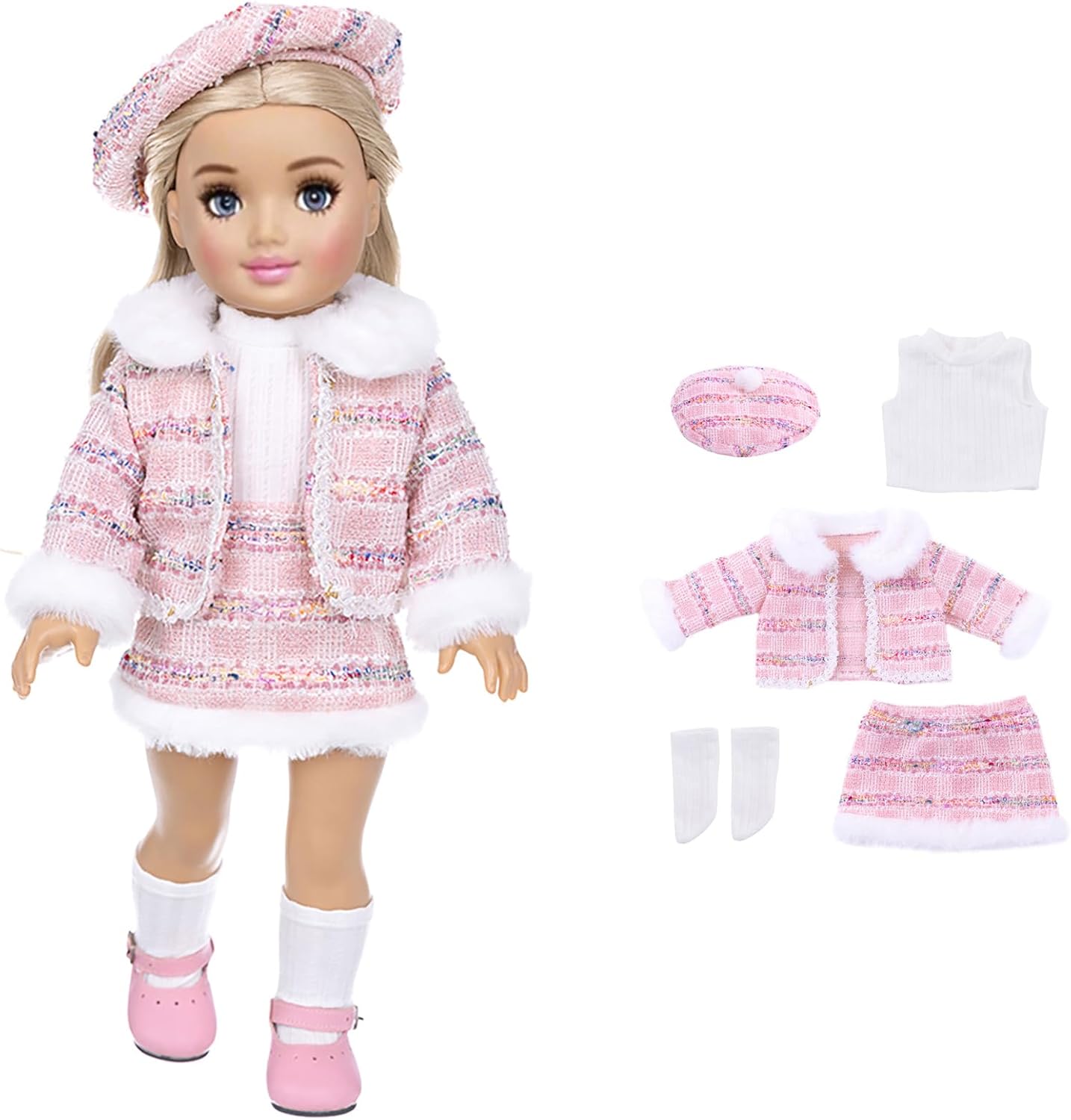 Realizzato in tessuto, questo set di vestiti per bambole offre una sensazione morbida e confortevole, con dettagli e lavorazione artigianale che garantiscono resistenza e stile per la casa, la scuola o le feste. Questo completo elegante dona a qualsiasi bambola un look alla moda, rendendola un'aggiunta a qualsiasi collezione di bambole Migliora il tuo guardaroba delle bambole con questo set di vestiti, include accessori che si adattano alle bambole alla moda da 18 pollici Per ragazze dai 3 agli 8 anni che amano vestire le loro bambole e potenziare il gioco fantasioso e la creatività Questo set di vestiti per bambole è disponibile in una varietà di stili, assicurando che ogni bambola possa impressionare in qualsiasi scenario