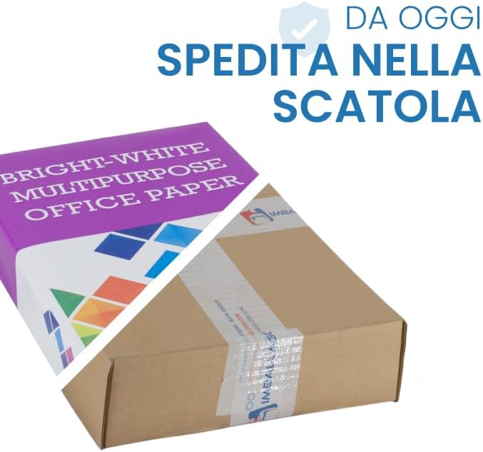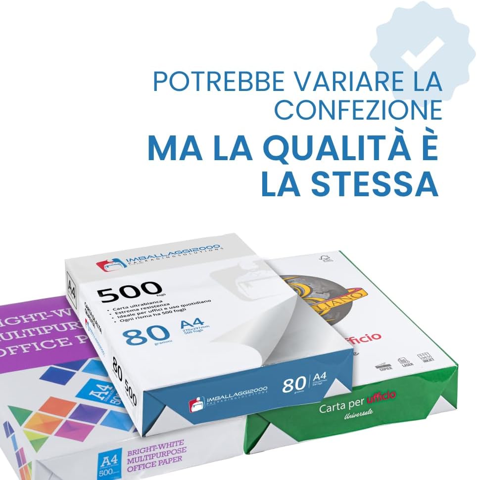RISMA DI CARTA MULTIUSO: Risma di carta ultrabianca multiuso per fotocopie e stampanti, ideale per rifornire a lungo la cancelleria di scuola e ufficio. I fogli hanno estrema resistenza con grammatura di peso 80 gr/mq, non lasciano trapassare pennarelli ed evidenziatori e sono perfetti anche per un uso quotidiano, grazie alla capacità di adattarsi a qualsiasi stampante PRODOTTO ADATTO PER OGNI STAMPANTE: I fogli sono adatti ad ogni tipologia di stampante, perfetti se si utilizzano dispositivi Ink jet (a getto di inchiostro) e laser, fotocopiatrici e/o fax standard IDEALE PER RIFORNIRE IL MATERIALE DI UFFICIO, SCUOLA E AZIENDA: Prodotto indispensabile per il rifornimento cartaceo di ufficio, scuola, azienda, casa e lavoro, utile per stampe e fotocopie. La qualità della carta garantisce un'ottima archiviazione, idonea per elevati volumi di stampa NEL RISPETTO DELL'AMBIENTE: Il prodotto è sostenibile, eco-friendly e riciclabile COMODO E PRATICO FORMATO: Pack da 1 risma contenente 500 fogli, ideale per non restare mai senza carta, perfetta per scuola, casa e ufficio, ottimo compromesso qualità-prezzo. I fogli sono in formato A4 (210 mm x 297 mm), 80 gr/mq. Risma spedita all'interno di una scatola, per evitare danneggiamenti