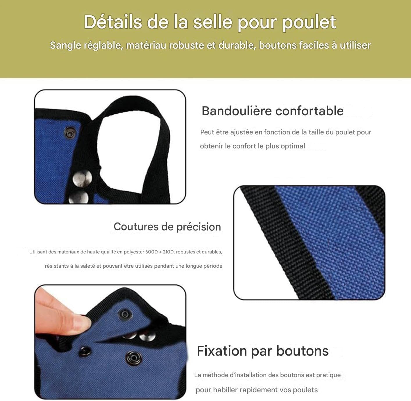 Traspirabilità rinforzata: progettato per una circolazione dell'aria ottimale con una struttura leggera e resistente. Garantisce un comfort costante anche dopo ore di utilizzo Vestibilità stabile: l'imbracatura per galline offre una presa sicura grazie alla doppia fibbia di regolazione, consentendo una regolazione flessibile della tensione per un comfort ottimale e un fissaggio affidabile durante l'uso. Protezione rinforzata: offre una maggiore difesa contro lesioni cutanee e danni fisici, diminuendo notevolmente la perdita di piume per mantenere le galline in uno stato confortevole e sano Design per un recupero ottimale: isolando i disturbi, questa sella supporta la naturale capacità delle galline di rigenerare le piume. Fornisce un'assistenza riparativa affidabile, previene ulteriori danni e rimane facile da usare. 4. Protezione completa: ottimizzata per la dissipazione e la ritenzione del calore, questa pettorina per galline offre comfort per il tempo. Applicabile senza restrizioni in tutte le stagioni per un'efficace difesa del pollame.