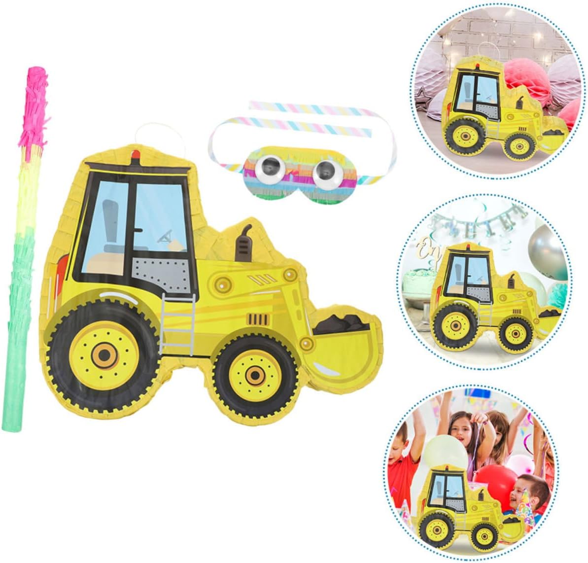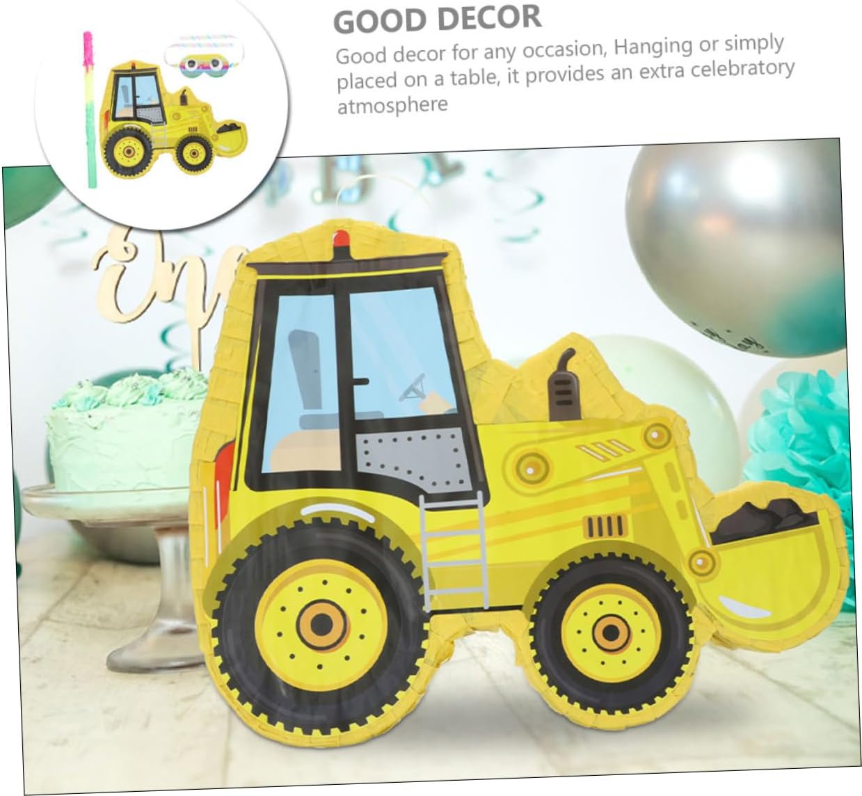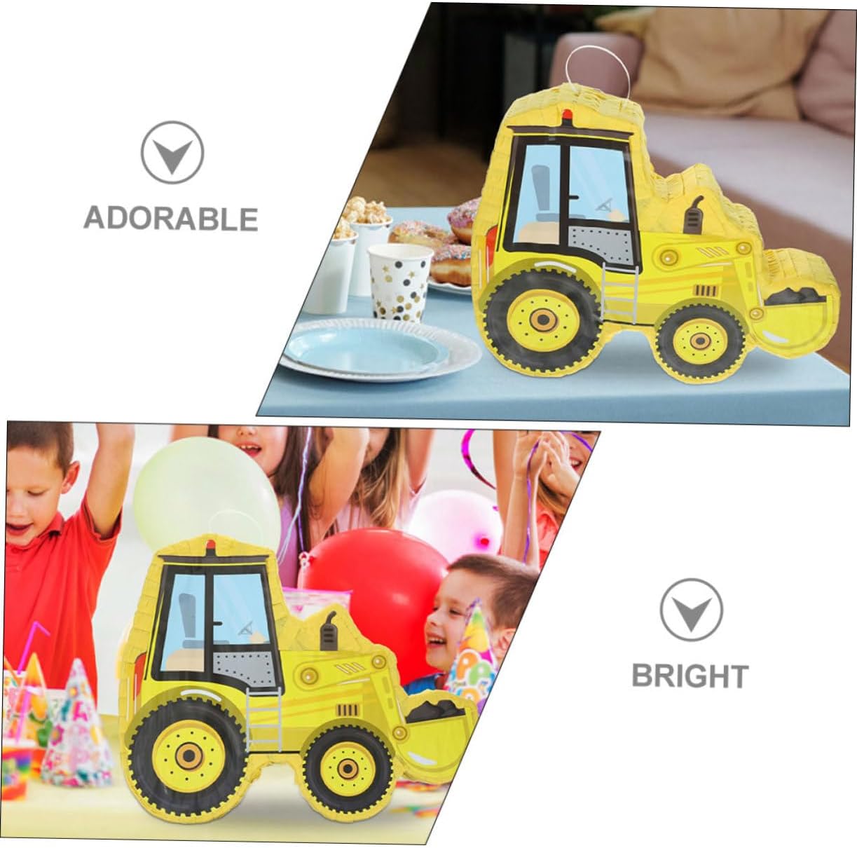 Design adorabile: questa piñata da escavatore ha un'adorabile forma da escavatore che le conferisce un aspetto vivace e attraente. camion. Truck Piñata Festival Piñata - Questa piñata creativa per escavatore può decorare bene la tua festa, ravvivare l'atmosfera della festa e aggiungere più divertimento. Forniture per feste a tema camion piccolo Piñata da costruzione - Sorprendi i tuoi ospiti con un'attività divertente e dolcetti, un divertente gioco di società per gli ospiti e forniture per feste per compleanni a tema camion Piñata con camion escavatore - puoi inserire gli oggetti di scena a tema compleanno per fare scherzi ai tuoi bambini e amici, decorazioni per feste di compleanno con camion Bomboniere a tema costruzione - puoi farlo con caramelle, piccoli giocattoli, piccoli regali, pieni di coriandoli o colpiti con una mazza da baseball, gli oggetti cadono, accessori di compleanno sul tema della costruzione