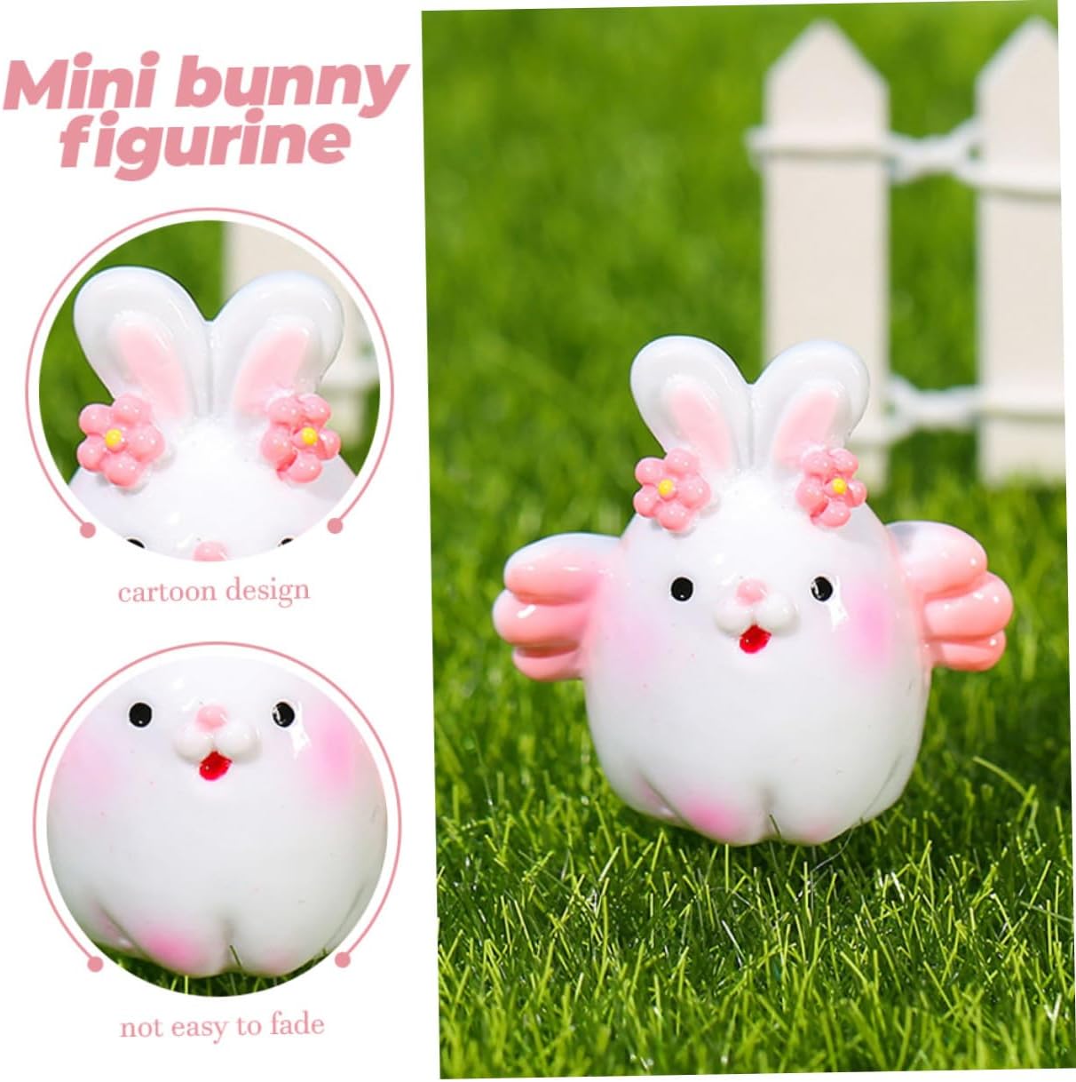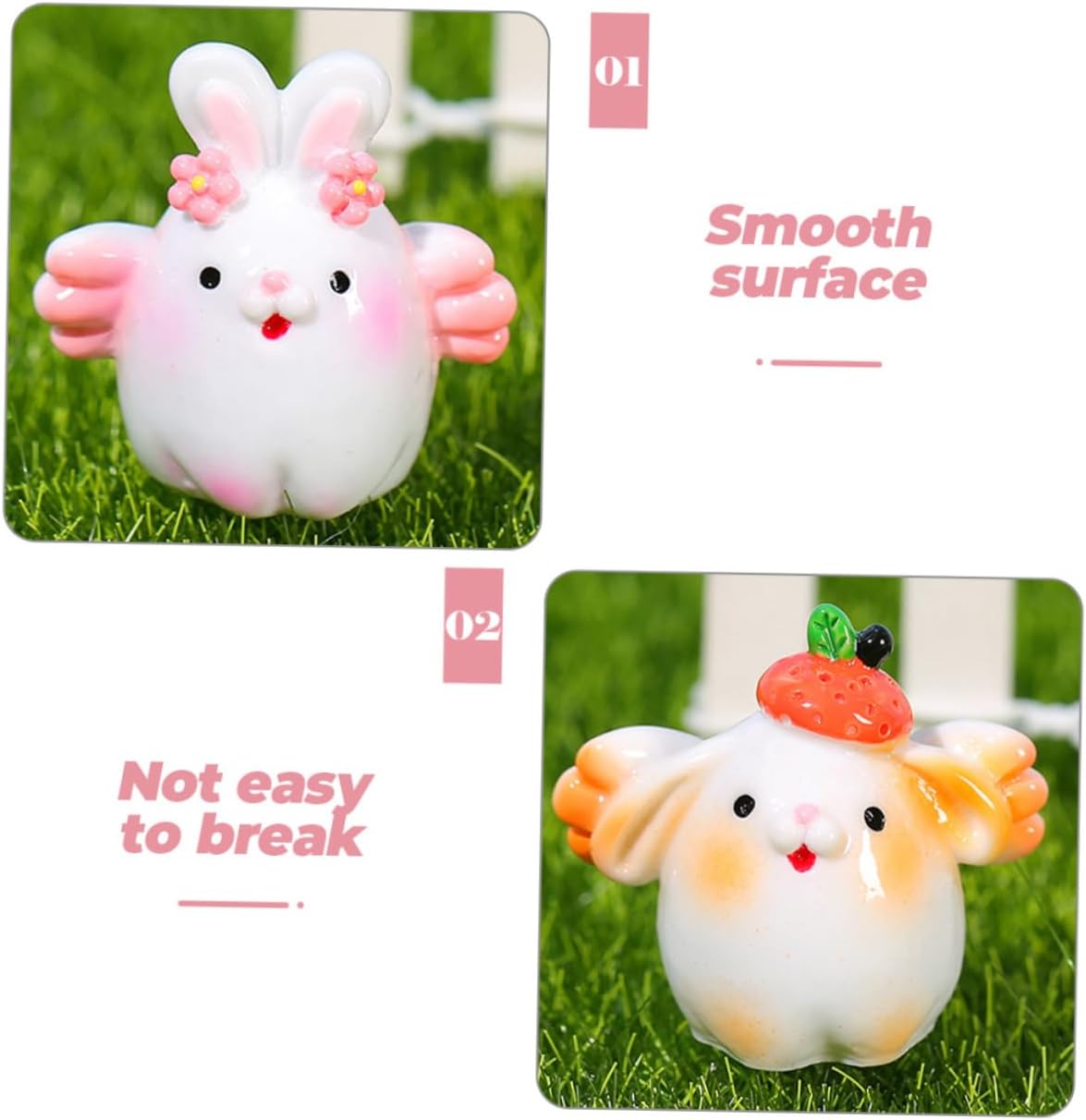 Ornamento micro-paesaggio: puoi posizionarli in diverse scene a piacimento, soddisfacendo il divertimento del fai da te del mini coniglietto Piccola decorazione a forma di coniglio: puoi usare l'ornamento per decorare la tua casa, il cortile e il giardino, la decorazione del paesaggio della casa delle bambole, ecc., mini scultura di coniglio Mini statuina di coniglio: ideale per decorare il giardino e per trasformare facilmente il tuo giardino in un mondo meraviglioso, ornamento di coniglio in resina. Mini statuetta di coniglio in resina: i coniglietti in miniatura sono un'aggiunta decorativa tuo balcone, cortile e giardino, statuette di coniglietti da giardino Statuine di conigli per auto: queste statuette di animali in miniatura possono essere utilizzate per la decorazione di micro paesaggi per auto o giardino, mini statuetta di conigli